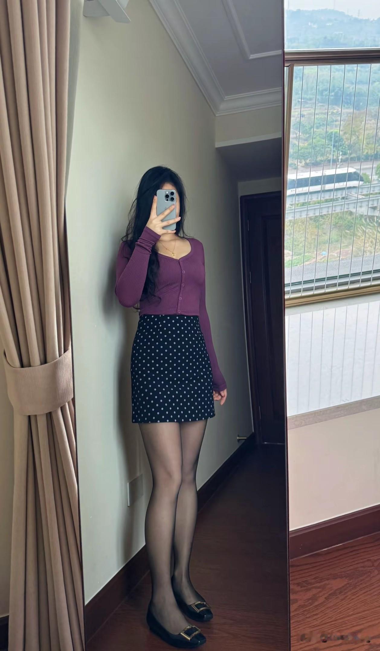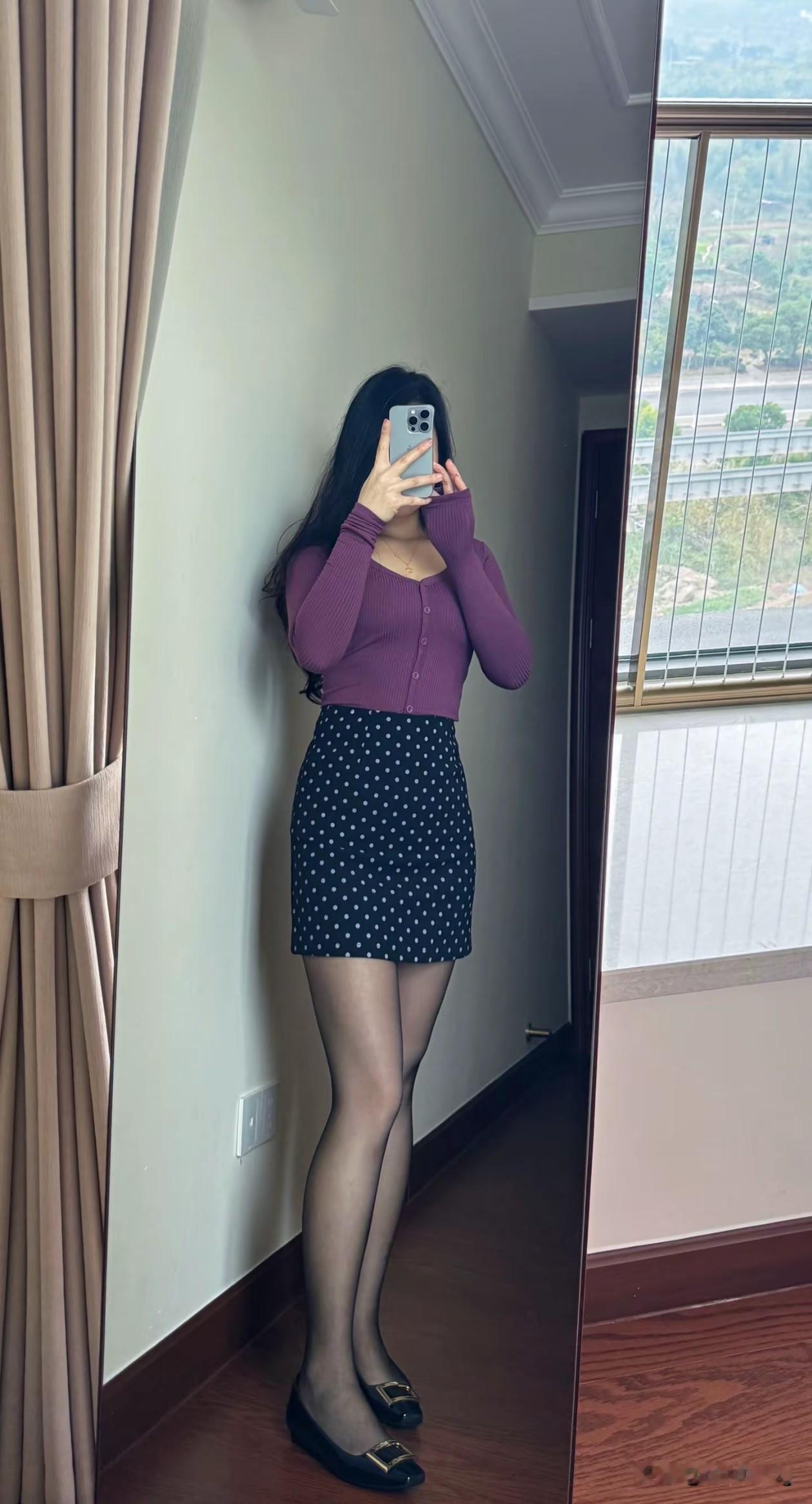紫调针织衫撞上波点半裙,是甜酷交织的日常呀