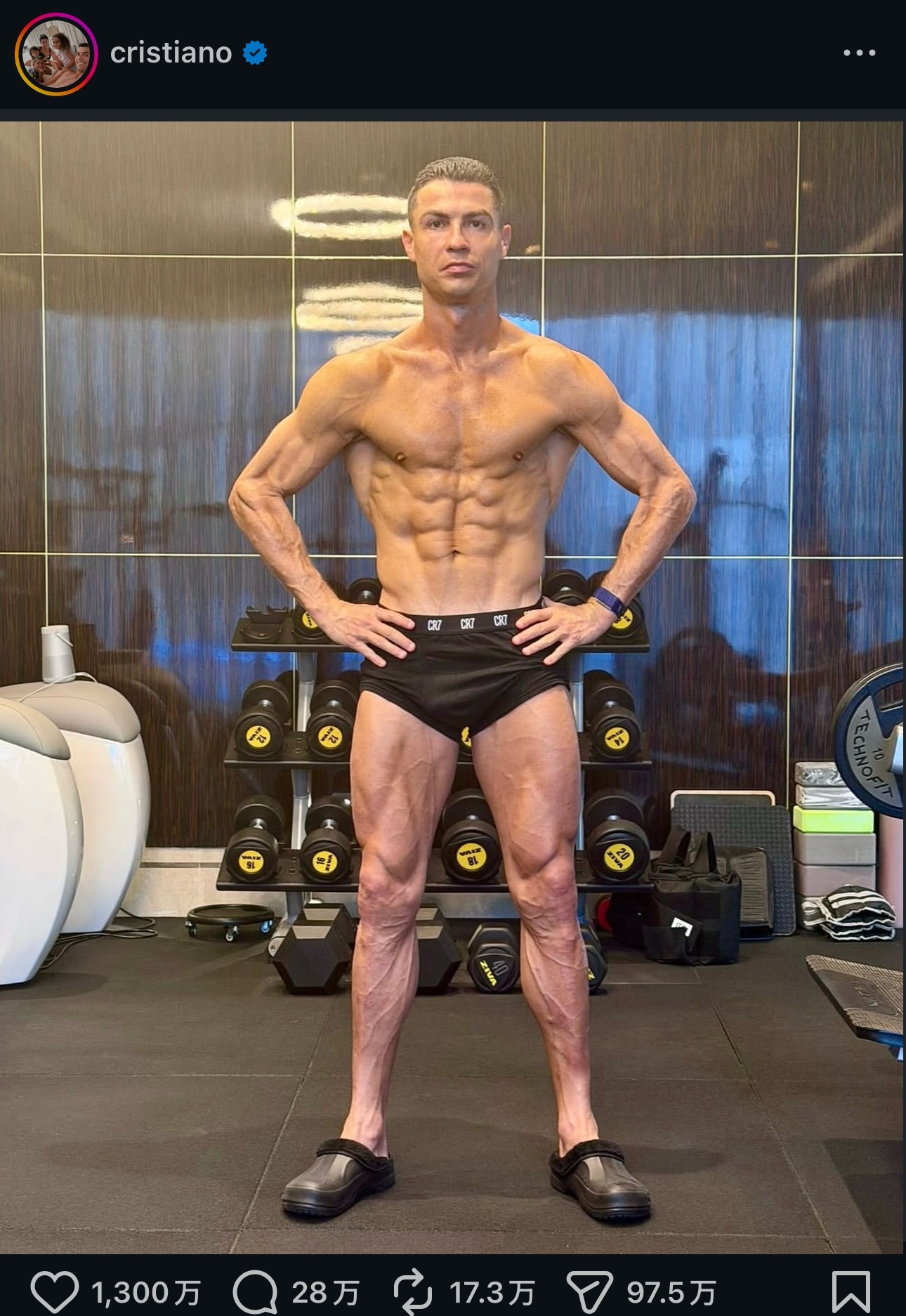 这身材什么水平?C罗在ins晒照,目前已经获得1300万点赞!