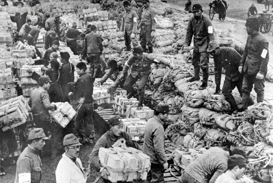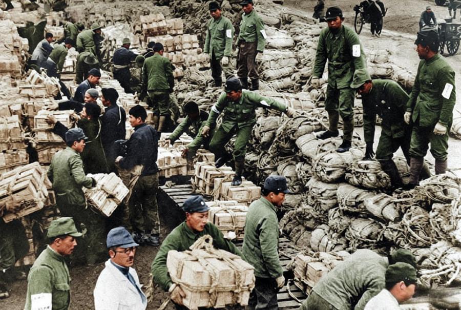 这是日军侵占东北期间掠夺物资的现场,照片中成山的包裹、箱装食品堆在空地上,日军士兵正搬运、分拣,这些本是东北百姓的口粮储备,此刻却成了侵略者的“战利品”。 1931年九一八事变后,日军在东北实施“粮食统制”政策,不仅强制征收农民70%以上的粮食(美其名曰“军用征购”),还禁止民间自由交易粮食,甚至直接劫掠粮仓、商铺的食品储备。这些被掠夺的粮食,一部分供日军部队消耗,一部分被运往日本本土或其他占领区,导致东北民间频发饥荒,仅1932-1934年,东北因缺粮饿死的百姓就超过百万人。
