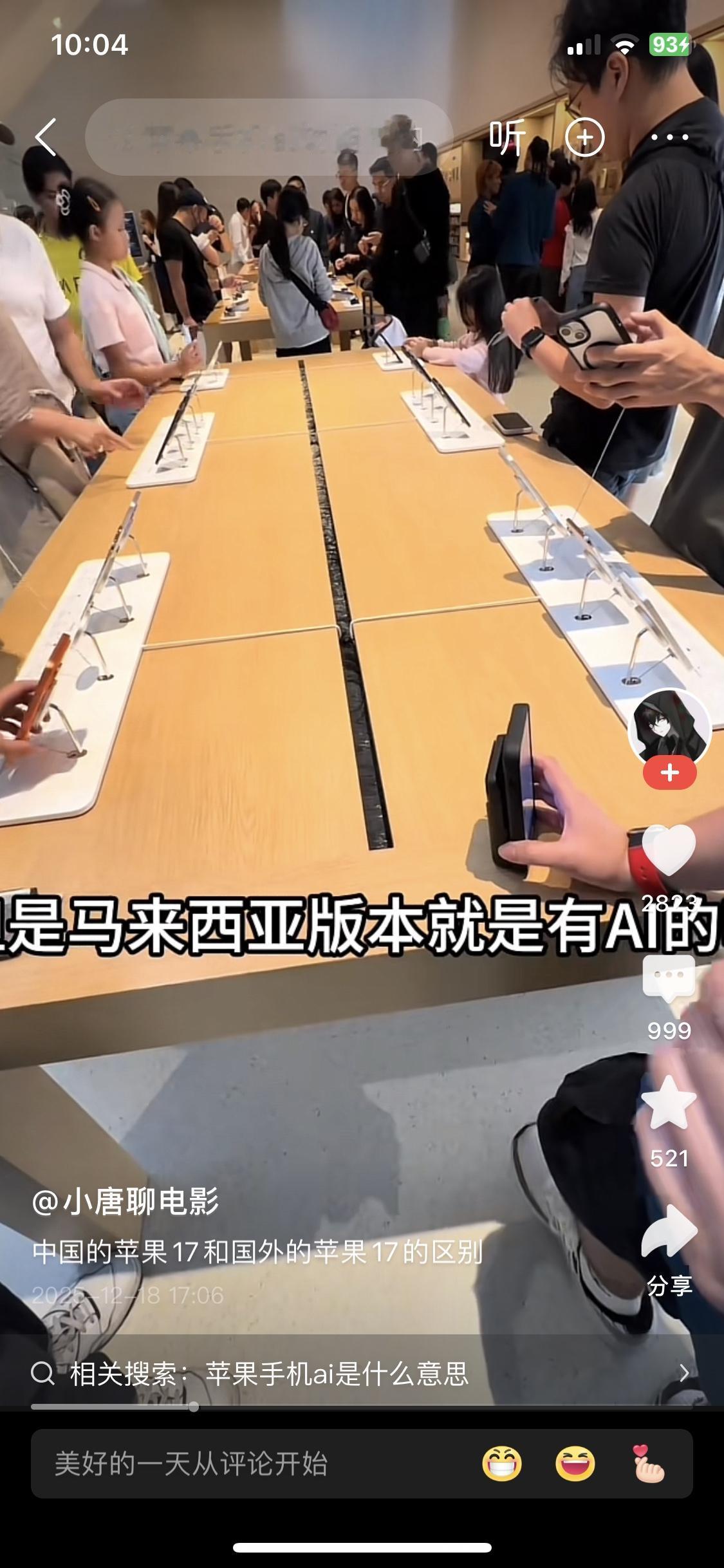 苹果这样顶级的手机,即便像马来西亚这些地区都可以用苹果AI,但是马来西亚版本的苹果手机拿回中国用也无法用苹果AI。有网友说如果用对付封杀苹果AI的本事去对付电信诈骗,还会有延续十几年,祸害百万人,损伤万亿吗?道理很明白,问题根源也似乎很明白。想到这,就想唱沧海一声笑…….