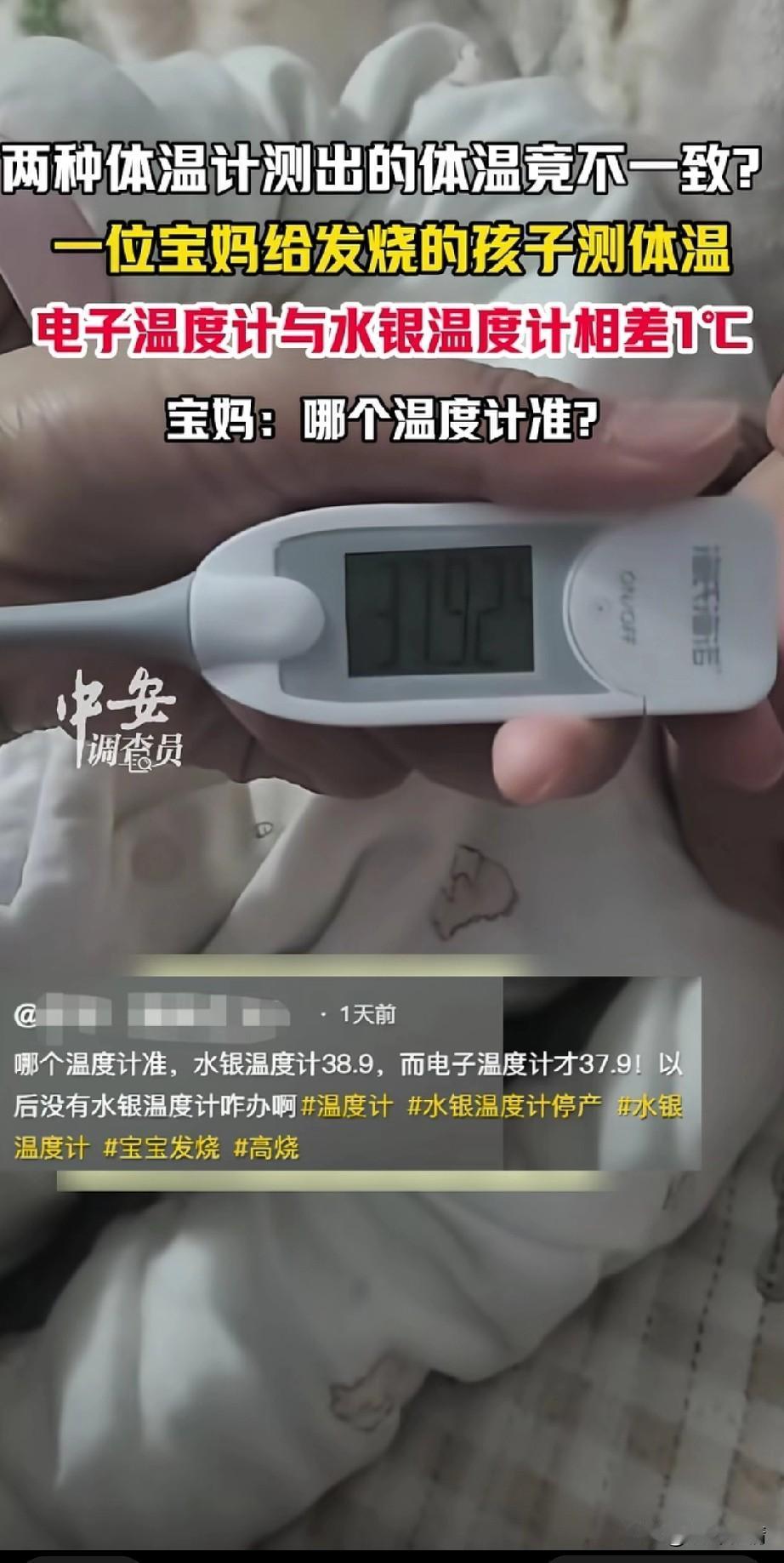 前段时间水银体温计被强哥冲上热搜, 有很多人表示水银体温计没了可以使用电子体温计, 说这种话的人这么快都被打脸了, 一女子晒出了自己家宝宝的体温, 用水银体温计量出来是38度9, 用电子体温计量出来是37度92, 基本算是相差了一度, 这就是真实的情况, 有孩子的人最能理解了, 很多爸妈都发现了这种情况, 所以他们才会在家中多买几支水银体温计,电子体温计又贵又不准, 这是不争的事实, 如今这事被爆了出来, 估计又要来一波水银体温计抢购热了, 大家觉得电子体温计准确吗? 水银温度计 医用水银体温计 传统体温计 无规水银温度计 水银体温计新规