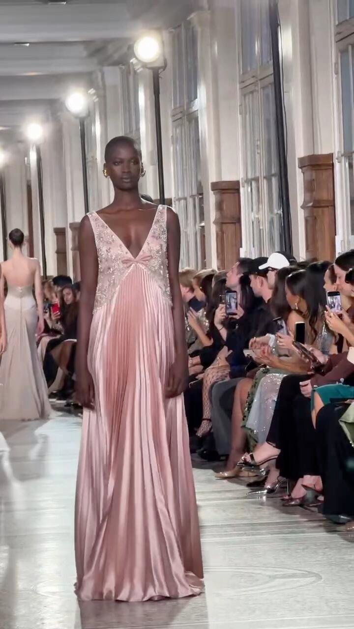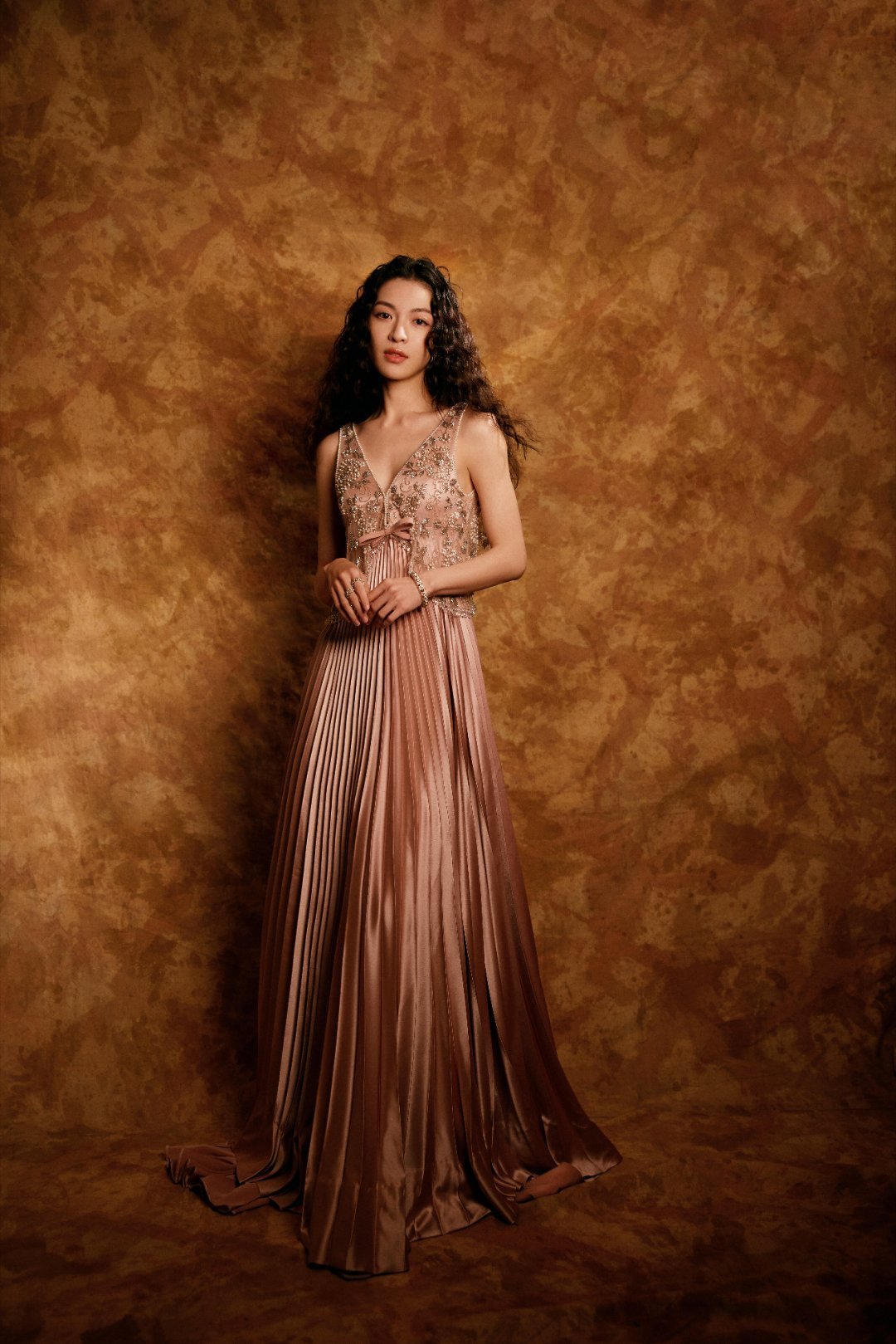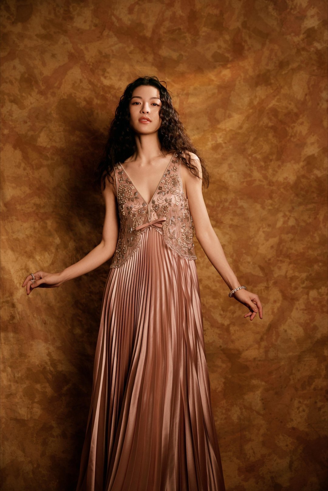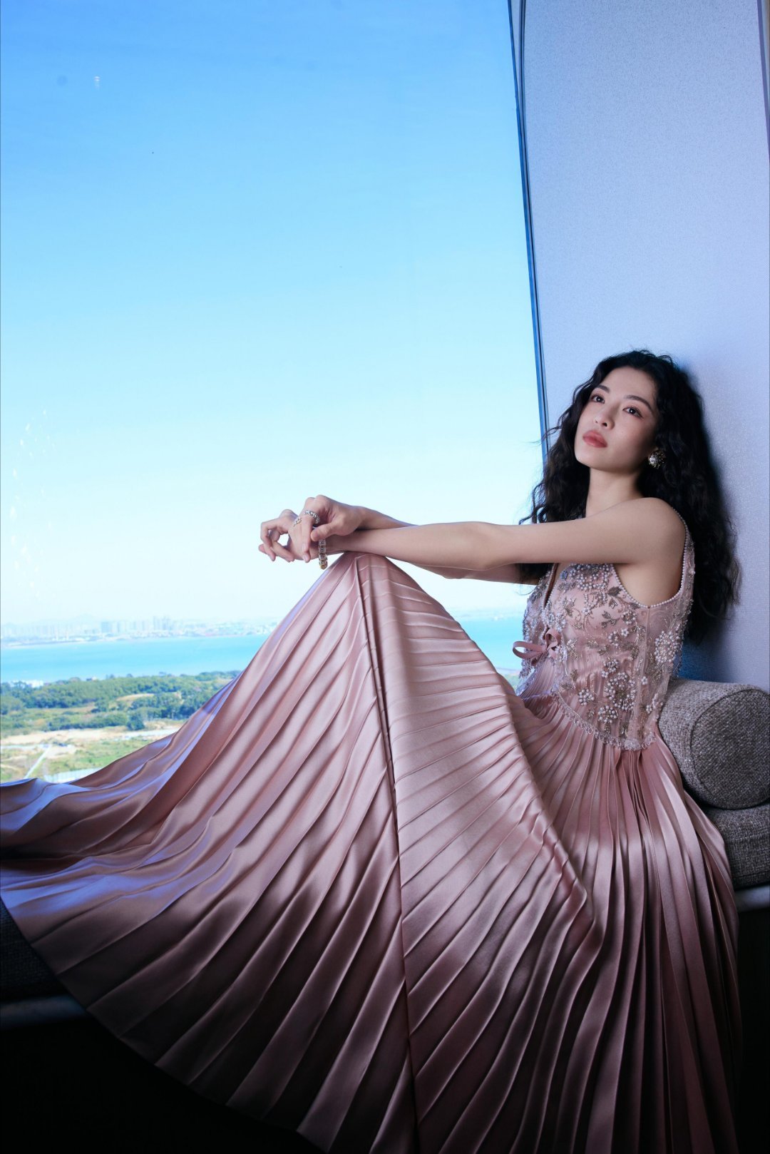 钟楚曦淡雅粉风格大赏2025年色彩记忆钟楚曦的淡雅粉礼服造型,是温柔与力量交织的美学范本,将浅粉的柔媚与高定的气场完美融合,在简约与华丽的平衡中,勾勒出独属于她的时尚腔调。这件浅粉礼服是造型的核心,摒弃了甜腻的亮粉调,选用低饱和度的灰调浅粉,自带高级的莫兰迪质感,对亚洲肤色的适配度极高,衬得肌肤愈发白皙通透。礼服上身的珠绣工艺堪称点睛之笔,细密的珍珠与闪钻以花卉纹样铺陈,似揉碎的星光落于裙身,随光影流转漾出细碎光泽,让柔和的粉色系跳出平淡,拥有了奢华的层次与内涵。而下摆的百褶缎面设计,垂坠的褶皱带着流动的韵律感,行走间裙摆轻扬,将浅粉的浪漫与缎面的矜贵揉成一体。搭配上的巧思,让这份淡雅更具张力。珠宝选择了闪钻耳环与珍珠手镯,与礼服珠绣形成“点面呼应”,小面积的璀璨没有抢走礼服的风头,反而让整体造型的光泽感更具层次。妆发则是平衡华丽的关键,一头蓬松的羊毛卷自然散落,卷度的慵懒随性打破了礼服的正式感,注入灵动的呼吸感;妆容弱化浓艳色彩,仅以裸粉唇色和清透底妆烘托气色,眉眼间的精致与礼服的淡雅基调完美契合,让温柔中多了几分慵懒的风情。暖棕色纯色背景如同高级画布,将浅粉礼服的质感与细节尽数凸显,而窗边的实景镜头里,海天一色的蓝与浅粉礼服碰撞,冷调的背景更衬得粉色温柔又明媚。钟楚曦的神态与姿态更是点睛,从容舒展的肢体、淡然又自信的神情,将礼服的温柔力量感诠释得淋漓尽致,让这组造型既有着高定礼服的隆重感,又不失女性的柔美与鲜活。