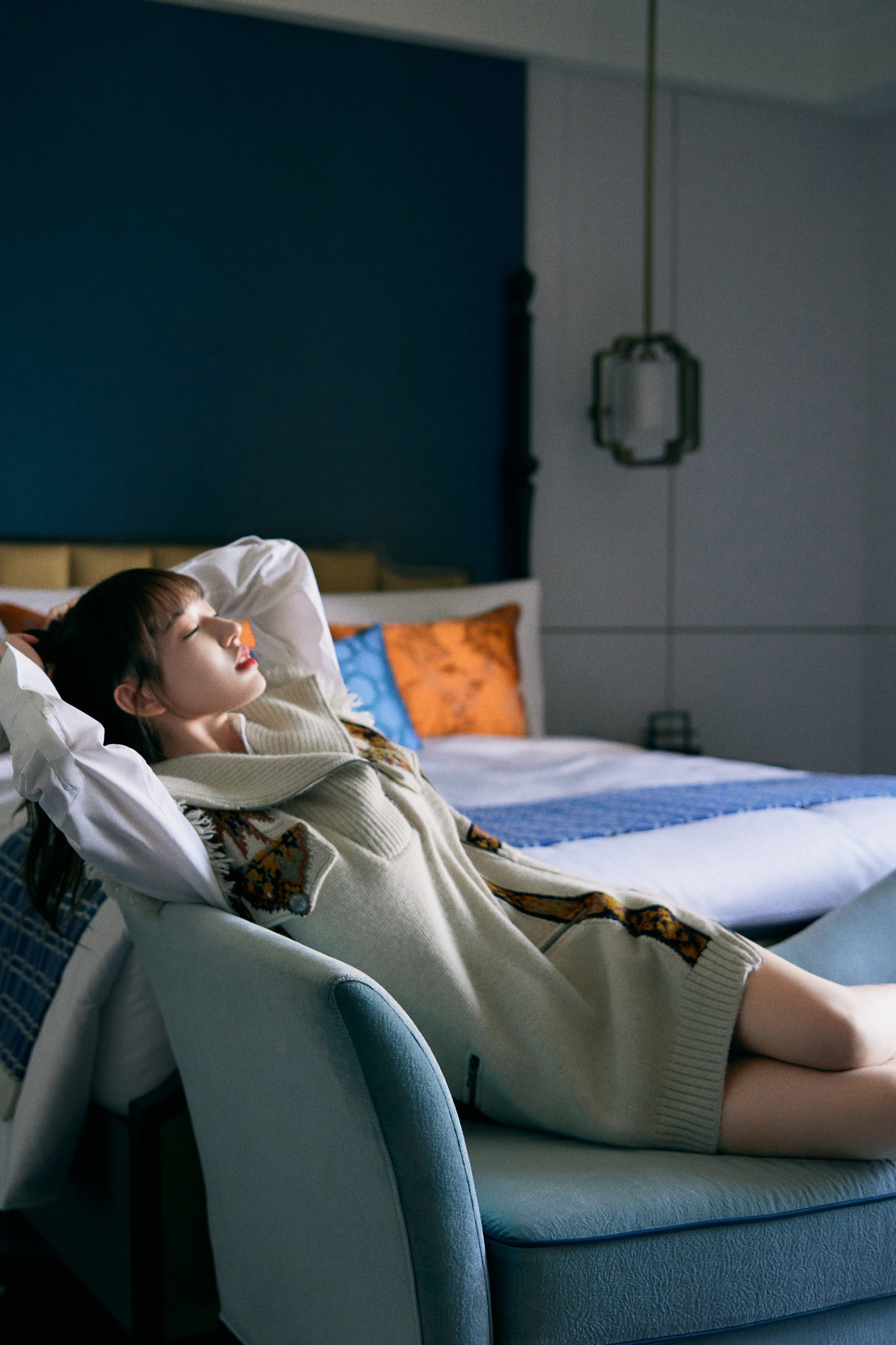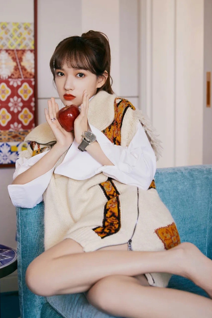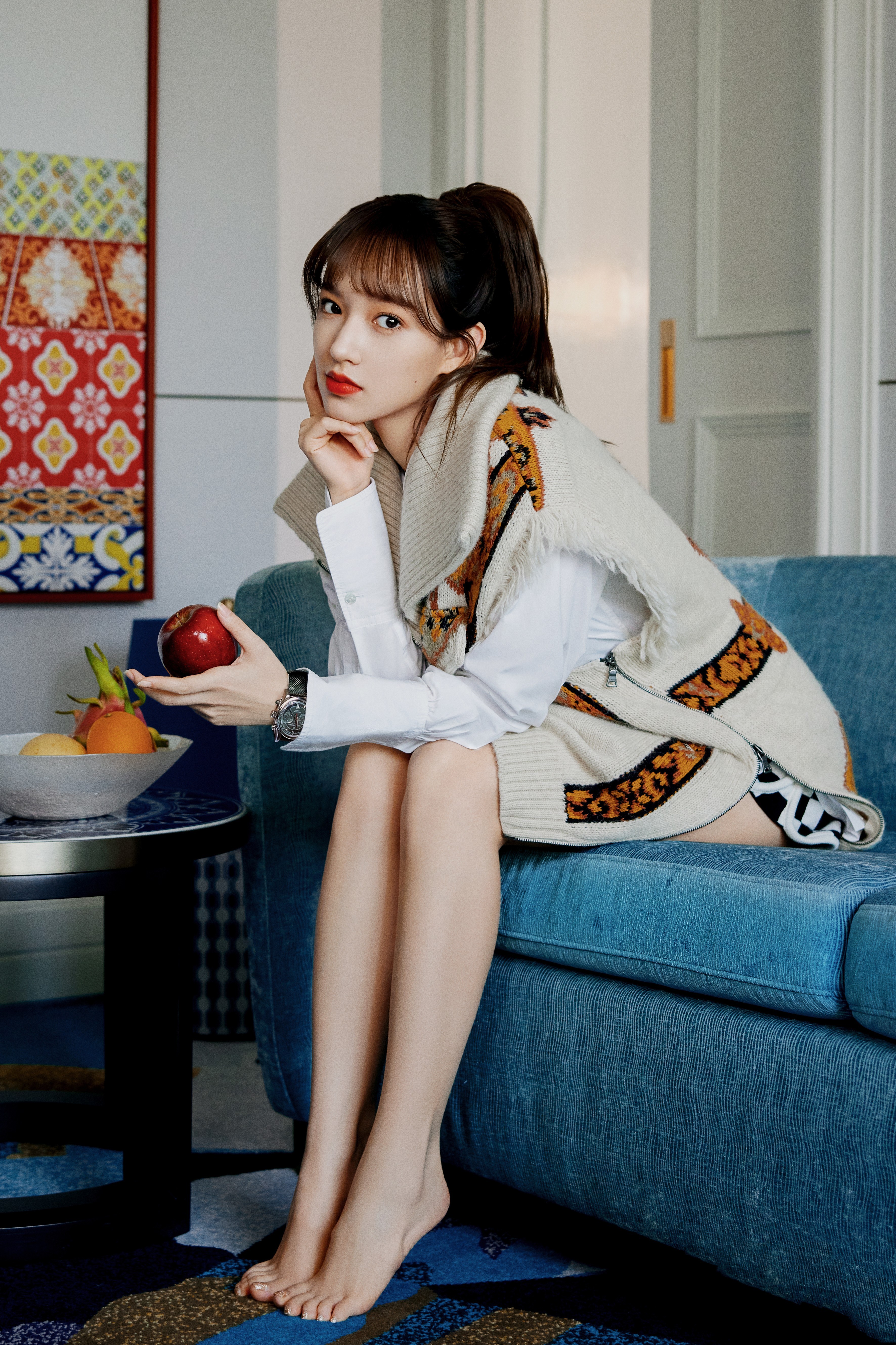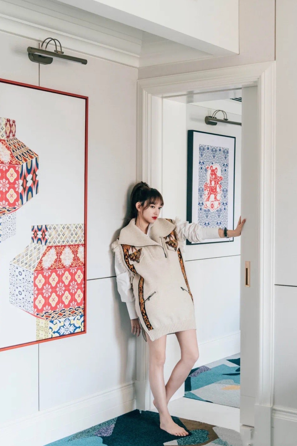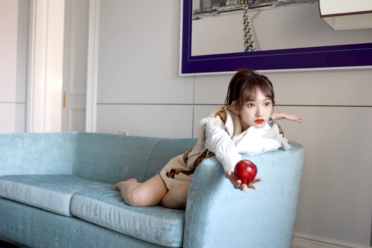 程潇小姐姐,高马尾毛衣穿搭唯美写真,光脚丫好可爱。程潇