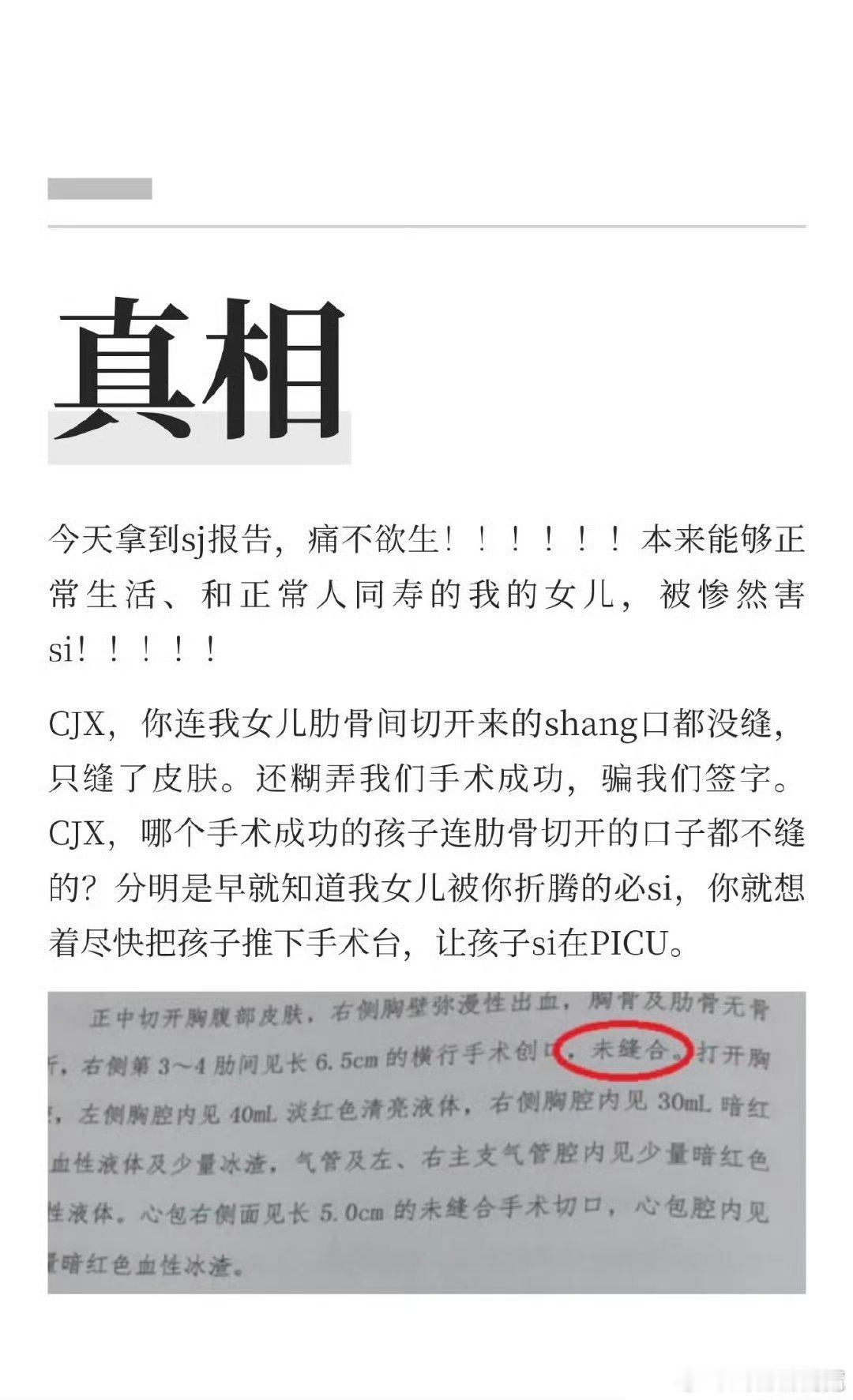 法医刘良小洛熙爸爸妈妈拿到SJ报告了,真相太残忍了,气到失语了…… 这个事件太痛了,宁波妇儿医院CJX必须死刑!!!! 小洛熙尸检报告
