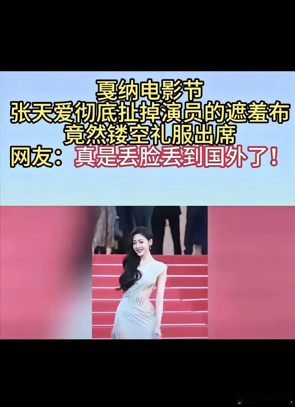 张天爱戛纳电影节“大火”了!“出名”了!但网友们却说她“丢脸丢到国外了”!为什么这么说呢?看这张图片就知道了!原来,出生于1990年的张天爱,在戛纳电影节上表现得太美了,简直美得令人惊掉下巴,惊为天人!你看她唇红齿白,肤白貌美,尤其是那S型的身材,身着天蓝色的披纱,腰腹部完全透明,尤其是胸前的突出,堪比珠慕朗玛峰啊!就凭这,张天爱征服了戛纳电影节,彻底火了,出名了!但许多网友却说她“出了中国人的丑”,“丢脸丢到国外去了”!可也有许多网友不这么看,他们认为,张天爱在《满城尽带黄金甲》中担任巩俐的光替,参演《长安的荔枝》,主演《中国机长》获29亿票房,饰演《建军大业》宋美龄一角,演技过硬!更关键的是,她的身材,她的形象,同样过硬!这次在戛纳电影节上,张天爱完美展现自己的身材美,该凹的凹,该凸的凸,这种一是一,二是二,实事求是的表现方法,有何不可!