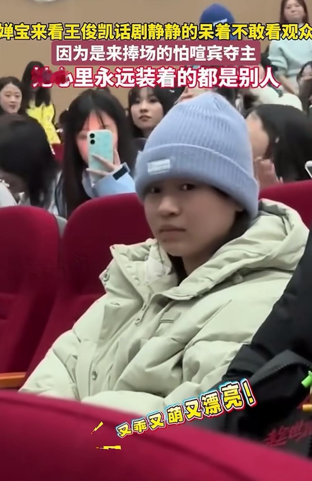 婵宝去看王俊凯的话剧,好乖。 穿白色羽绒服,带着蓝帽子的全红婵,去看王俊凯的话剧。一坐下周围人就认出她来。都拿出手机拍照,全红婵左右看看,不做声。她生怕自己成为主角,怕自己喧宾夺主。。 乖乖的坐着的全红婵脸红朴朴的,对着摄像微微笑起来。太可爱了。