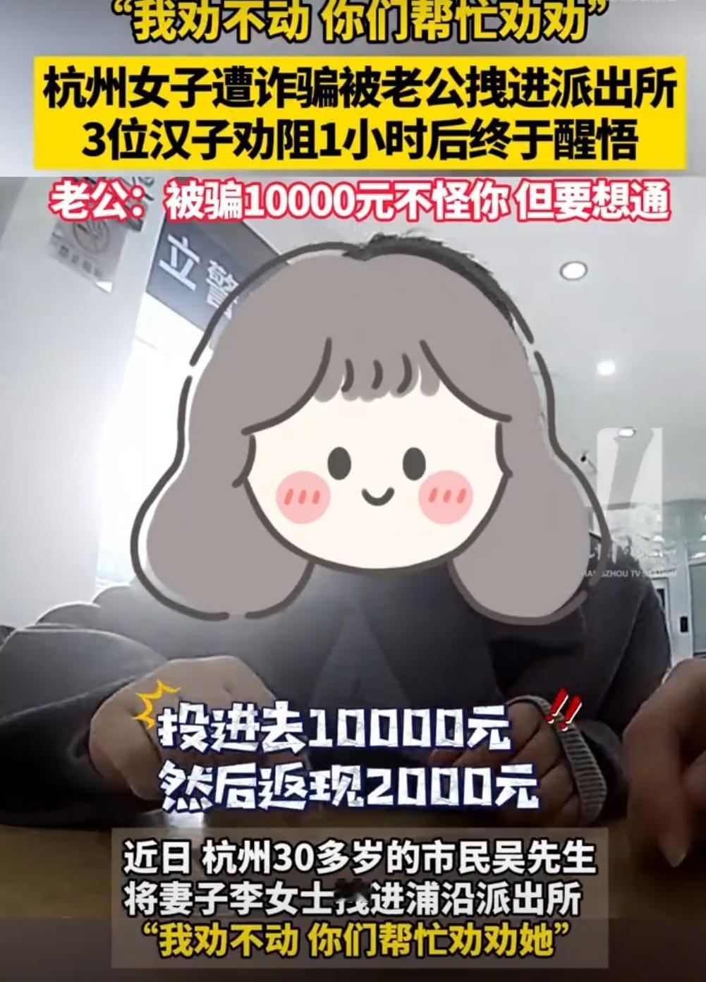 硬核反诈!妻子陷刷单陷阱不听劝,丈夫一把拉起直奔派出所 近日,浙江杭州发生一幕“硬核反诈”。吴师傅发现妻子可能遭遇刷单诈骗,前两笔小额返利兑现后,对方要求再转45000元。妻子深信不疑,面对吴师傅的苦劝无动于衷。 眼见劝阻无效,吴师傅当机立断,强拉硬扯地将妻子带到了派出所。面对妻子的不解与抵触,派出所民警迅速行动,三人默契分工:一位民警结合以往案例,详细剖析此类诈骗的套路与危害;另一位民警当场核查涉案账号,指出多个可疑之处;还有一位民警耐心细致地做思想工作。 经过一个多小时情理法结合的共同努力,原本执迷的女子终于认清骗局,幡然醒悟。正是丈夫的果断与民警的专业,成功保住了这个家庭的45000元血汗钱。 警方提醒:所有刷单都是诈骗!切勿相信“点赞”“先小额返利”等谎言,任何要求垫资的刷单都是诈骗。如遇劝阻,请家人耐心沟通,必要时可求助警方。