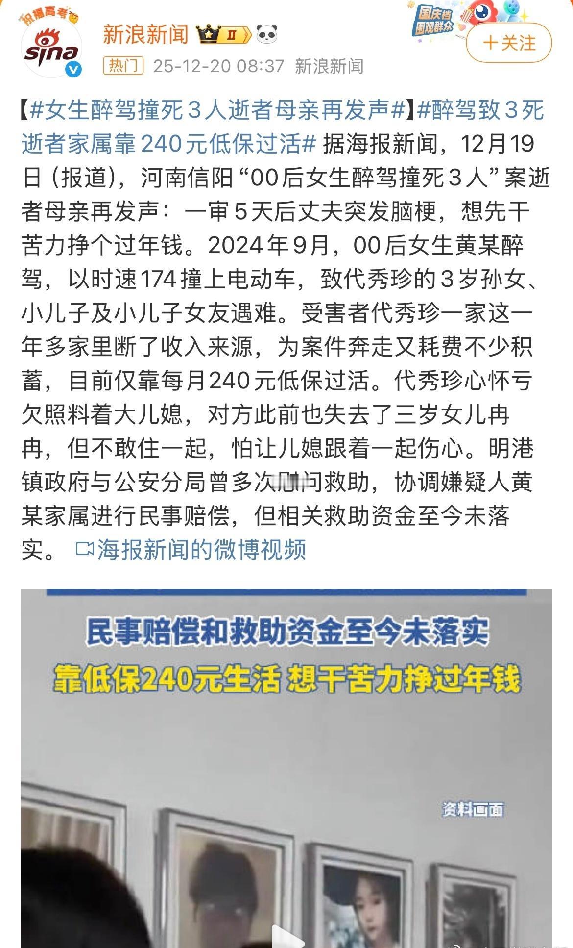 女生醉驾撞死3人逝者母亲再发声酒驾就应该加大惩罚力度!罚的不够重所以很多人还存在