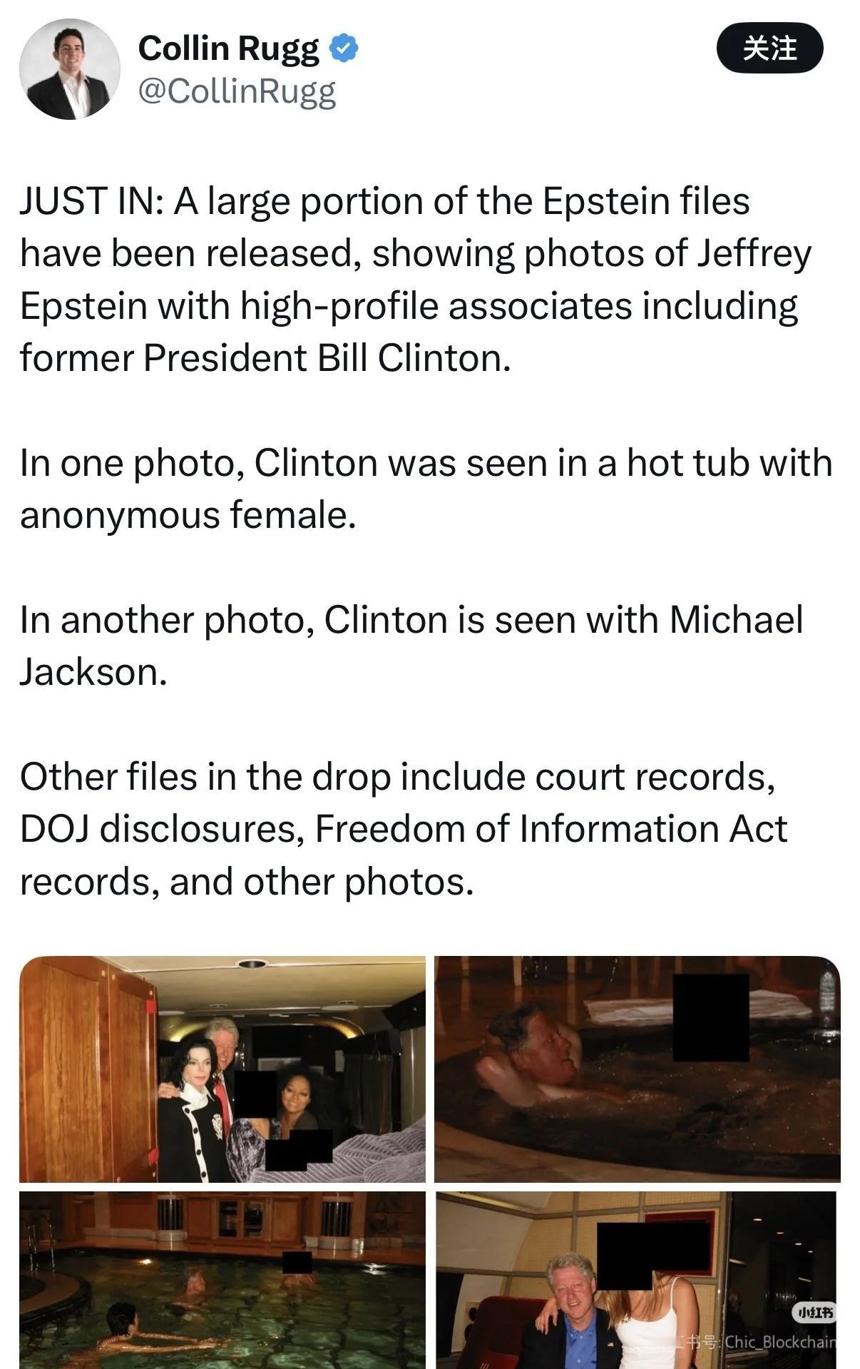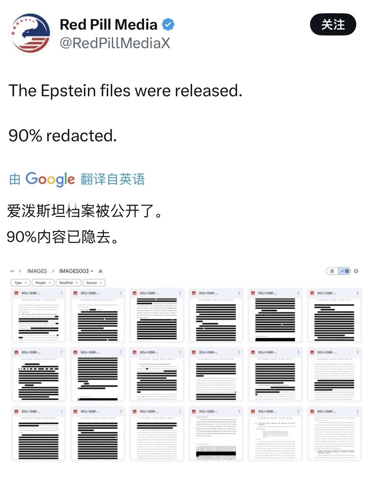 美国司法部公布了部分爱波斯坦,不过里面90%的内容被隐去,我们看到的是一页又一页背涂抹的黑框的文件。 网友直呼,看了个寂寞。 克林顿倒是露脸了,包括他与女性的亲密照片,以及他在浴缸中的照片,让人怀疑克林顿是不是被他的党派抛弃了。