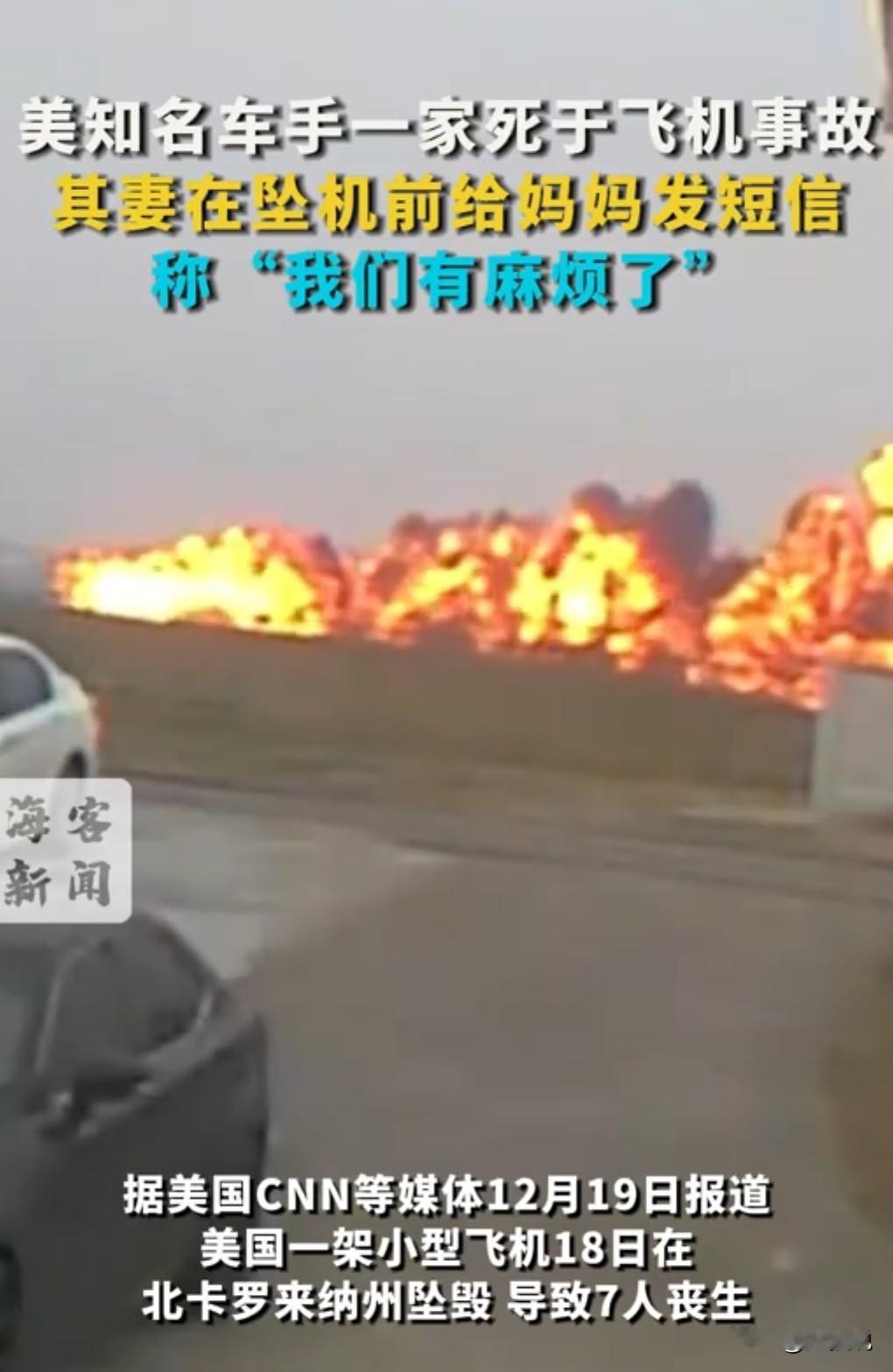 这都多少起了,还敢坐私人小飞机? 当地时间12月18日,美知名车手一家4口坠机身亡。 总共死亡7个人。 看来这个私人飞机那不是一般人能够驾驭的,一定要特别的专业。 美国经常发生这种私人飞机坠机的事情。 很多都是那种有钱有地位的人。 所以真是敲响了警钟,别拿自己的生命开玩笑。
