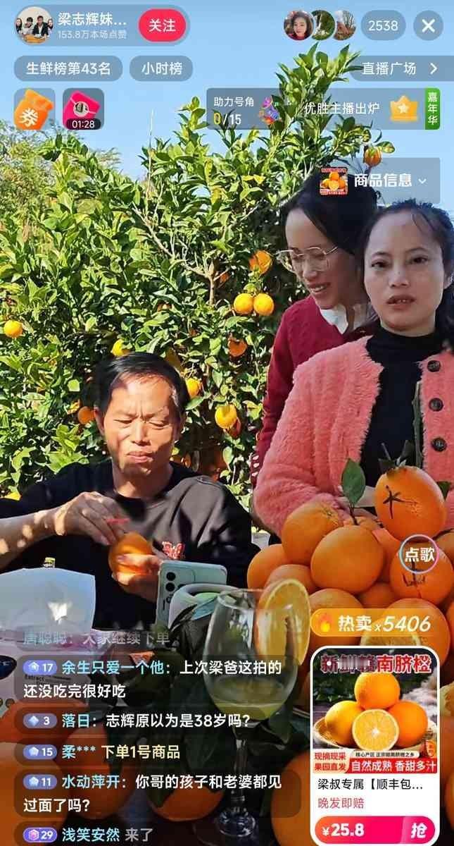 直播里,姐妹俩说感谢爸爸给了这么多兄弟姐妹。 这话听得我后脊梁一凉。 她们是梁志辉的妹妹,刚被找回的寻亲家庭一员。现在正学着哥哥开直播卖橙子,在线两千多人,话不多,小动作倒不少,感谢爸爸那句说得特别认真。网上都在说,这俩姑娘看着没哥哥弟弟自信,发展好像也不如男孩,估计直播也做不长久,毕竟不是当事人,没亮点,网友同情心也有限。 但问题根本不是她们能播多久。是她们在谢什么?谢那个让她们从小被送走、如今需要靠“苦难”标签才能被看见的爸爸?这感谢里透着一股被规训好了的认命,一种对伤害来源的感恩戴德。哥哥可以谈笑风生,弟弟是学霸,她们却困在“懂事女儿”的角色里,连不自信都成了被点评的素材。 最荒诞的是,她们越努力表现“感恩”,看客越觉得她们“乏味”。她们在努力证明自己配得上这份迟来的关注,而这本身就成了新的枷锁。 这不是谁更有出息的问题,是有人连愤怒的资格都被悄悄没收了。