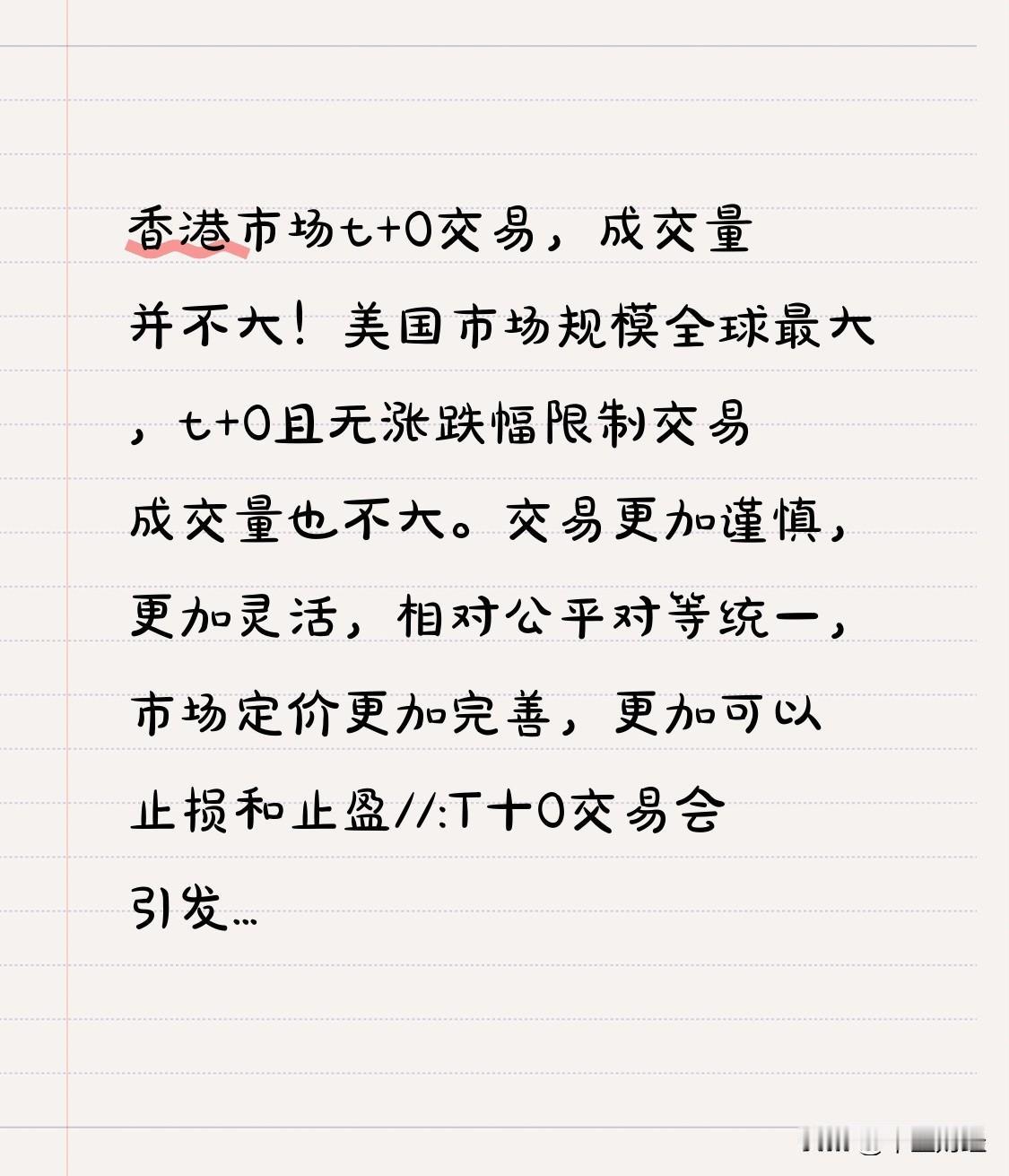 香港市场t+0交易,成交量并不大!美国市场规模全球最大,t+0且无涨跌幅限制交易成交量也不大。交易更加谨慎,更加灵活,相对公平对等统一,市场定价更加完善,更加可以止损和止盈//@远见卓识饺子zNk:T十0交易会引发成交量过大。卷商数钱数不清楚保险柜装不下钱堆积如山[笑哭]
