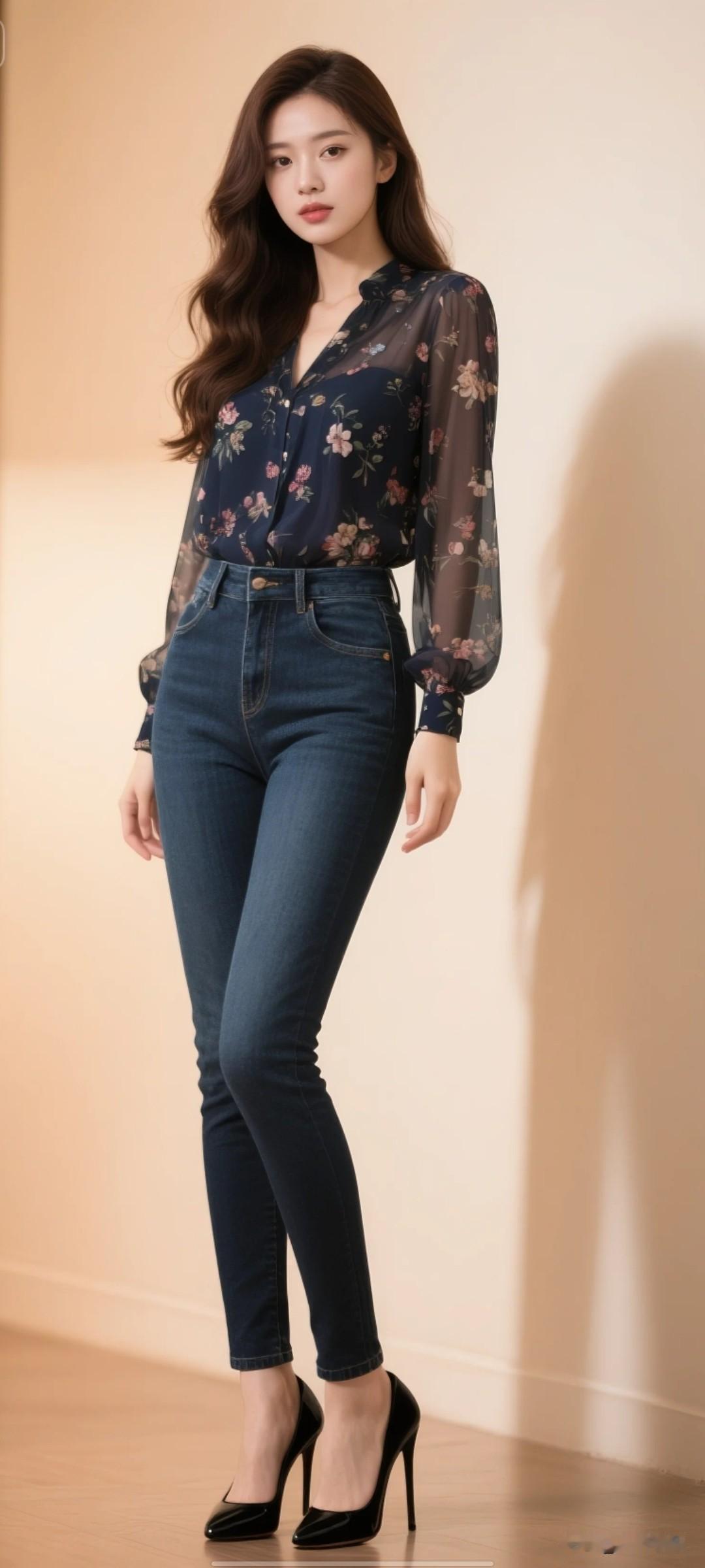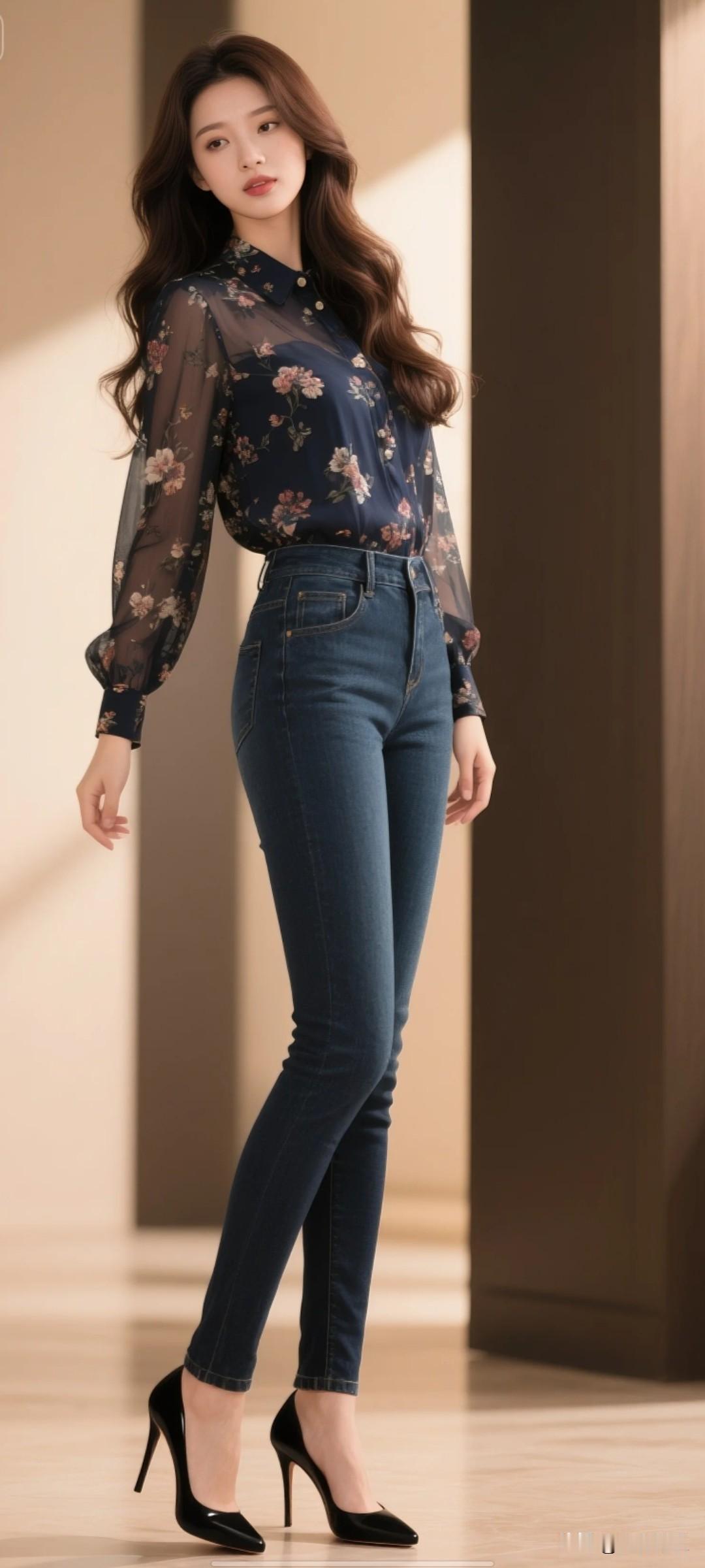 优雅气质穿搭指南: 花边衬衫+牛仔裤+高跟鞋,完美演绎都市女性风范!
