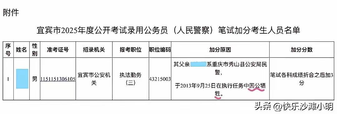 这是一位烈士的孩子,烈士因公献出了生命,鞠躬尽瘁死而后已。烈士子女及家庭付出了太多的艰辛。烈士的孩子只要接受了一定的教育,能胜任工作岗位,政治清白,无犯罪记录,别说加三分,直接录用,人民都没意见。烈士的血不能白流!