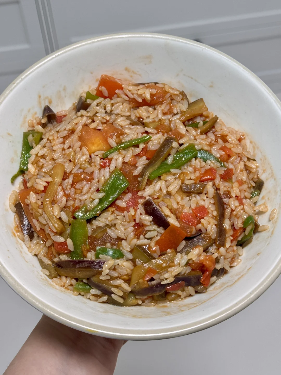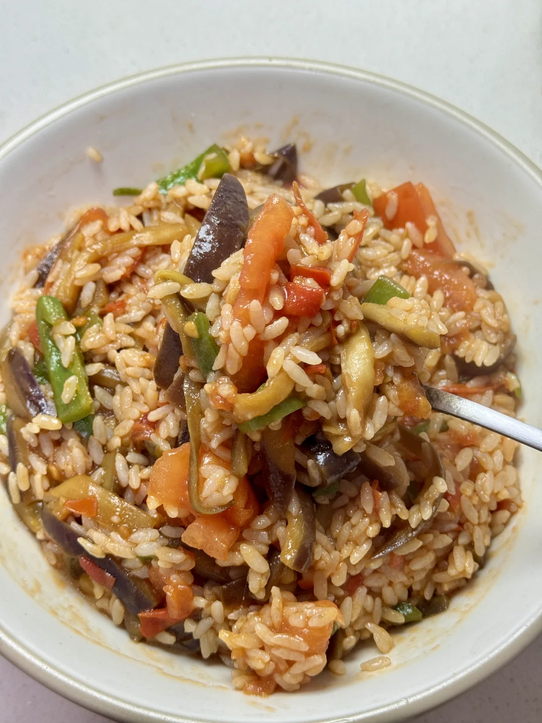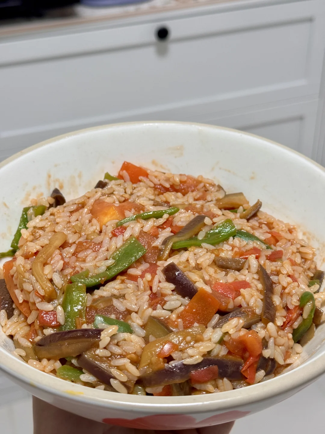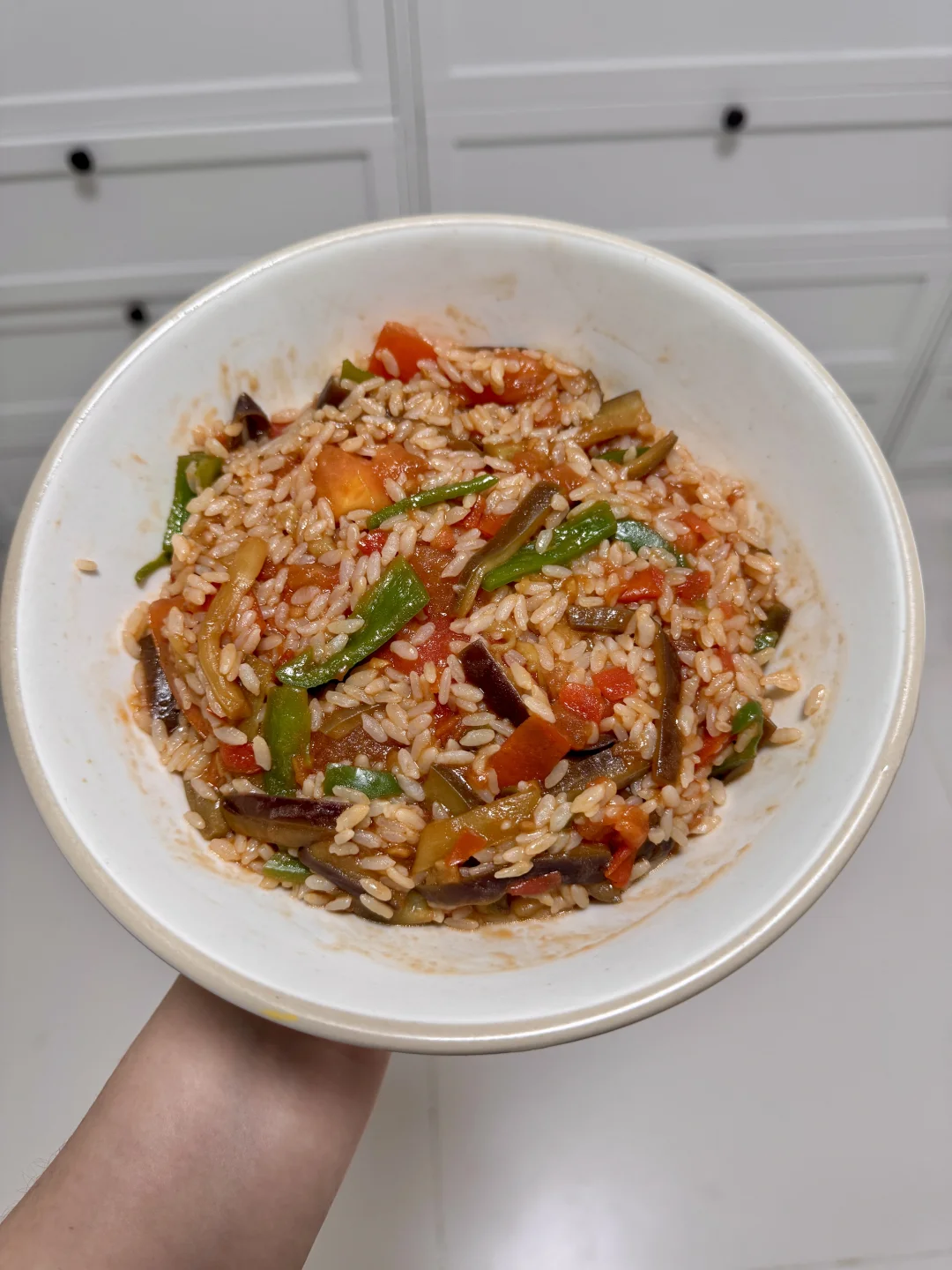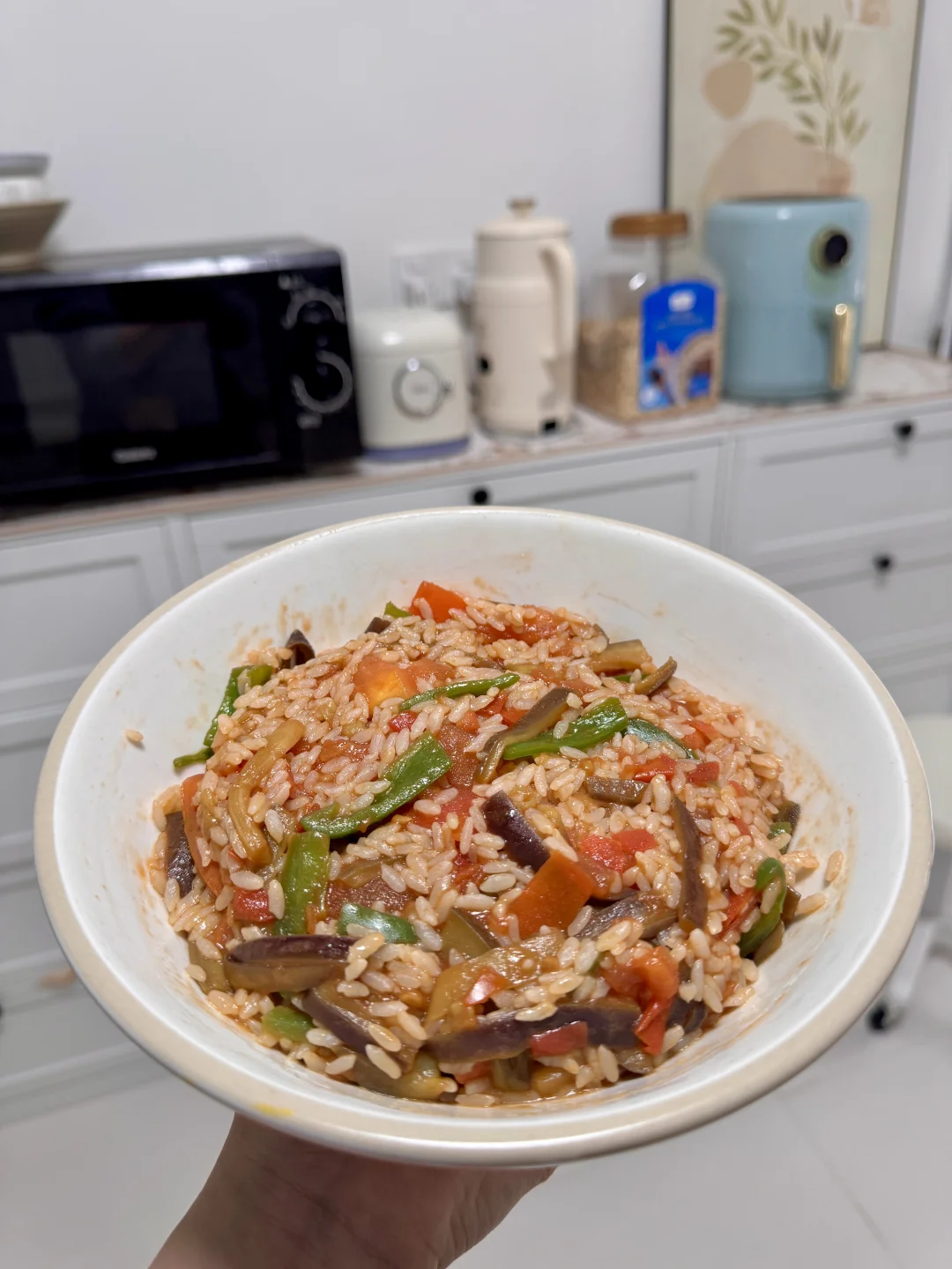 软乎乎的茄子吸饱了番茄的酸甜酱汁,青椒的脆嫩劲中和了油腻,带着点恰到好处的微辣,每一口都超开胃。把滚烫的菜和米饭拌在一起,酱汁裹满每一粒米,香得人顾不上烫嘴,大勺大勺往嘴里炫,吃完连碗底都想舔干净! 📜食材:茄子、番茄、青椒、米饭 🍳做法:图7