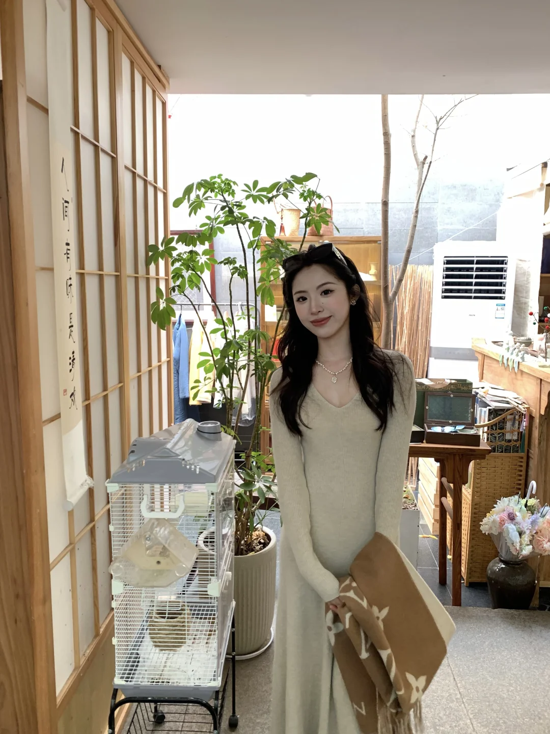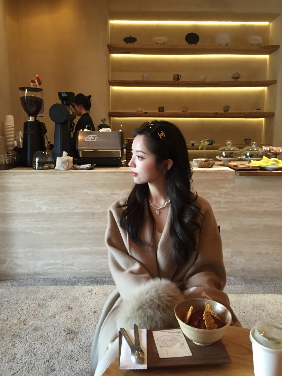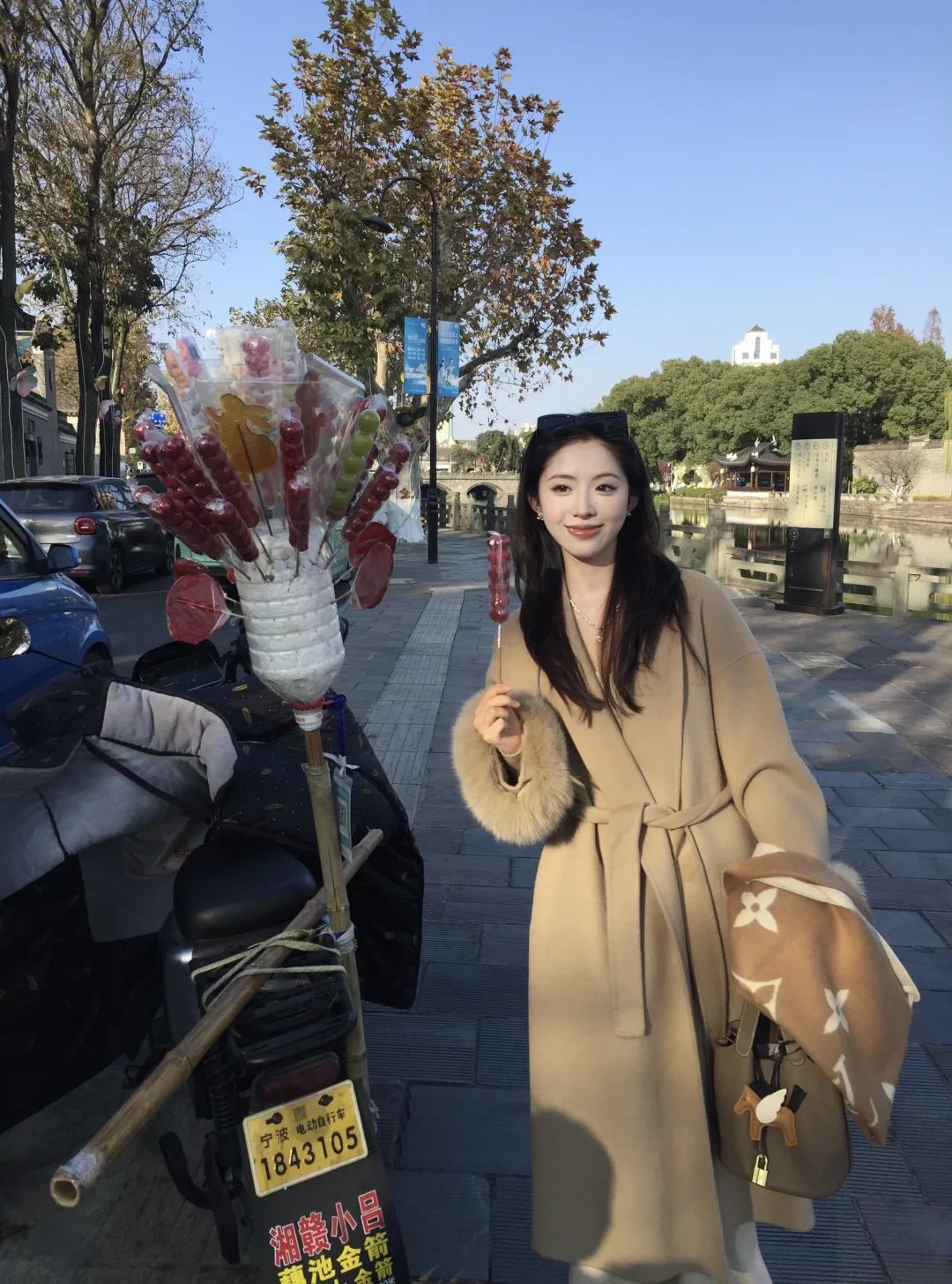 浅驼色大衣的浪漫 与湖水垂柳撞个温柔的满怀