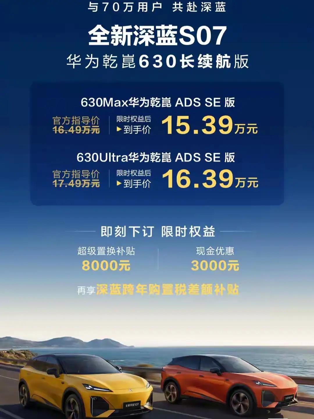 长安汽车董事长朱华荣终于承认,深蓝汽车也加入了内卷,并直言:中国新能源车出海的窗口期只有2到3年时间。智能化的初衷是让用户更安全、更轻松、更舒适。现阶段需要为用户提供足够的安全保障,即使这些保障可能一生都用不上,但在特殊情况下能够更好地保护乘员安全。 深蓝S07华为乾崑长续航版上市 12月11日,2026款深蓝S07华为乾崑长续航版的推出,便是深蓝汽车在市场竞争中的有力回击。 2026款深蓝S07华为乾崑长续航版凭借其出色的性能和诱人的价格,吸引了众多消费者的目光。 这款车限时权益后到手价仅需15.39万元起。在这个价位段,能拥有这样一款配置丰富、性能卓越的车型,极具性价比。 在续航方面,它搭载77.94千瓦时中创新航磷酸铁锂电池 ,CLTC续航里程高达630公里,原力超级电驱2.0系统总成工况效率达92.3%,即便是在-20℃低温环境下,续航保持率也能达到约75%,还支持3C超快充,15分钟就能将电量从30%充至80%,补能约380km,完美解决续航焦虑。 智能驾驶也是该车的一大亮点,全系标配华为乾崑ADS SE智能辅助驾驶系统,配备3颗毫米波雷达、10颗高清摄像头和12颗超声波雷达等25颗高精度传感器。 高速领航辅助(NCA)功能强大,施工锥桶识别率高达92%,人工接管率低于5%;城市通勤时,LCC Plus功能轻松应对复杂路况。 智能泊车支持160种场景识别,极窄车位45秒就能轻松泊入,成功率达88% ,还有离车泊入/泊出功能,通过手机APP就能远程操控。标配540度全景影像、透明底盘与DOW开门预警,预防行车泊车风险。 被动安全方面,车身采用“六纵四横一体网格”设计分散碰撞能量,全系标配多气囊,配备ISO FIX儿童座椅接口;电池“T”字型耦合设计搭配加强边框,降低碰撞破损风险。 电池安全上,电池配备液冷与预加热系统,极端环境下可稳定状态。此外,车辆还通过云端到车端的多层防护,保障智能驾驶与车机交互的数据安全。 外观上,延续家族“共生美学”设计语言,“双前脸”设计满足不同审美,智慧星河灯组搭配隐藏式门把手、无框车门与溜背车顶,风阻系数低至0.258Cd 。内饰采用超纤绒感麂皮材质,搭配64色氛围灯和浮光律动音箱灯效,15.6英寸2.5K“向日葵屏”与55英寸AR - HUD组合,车机芯片升级为高通骁龙8295P,前排双零重力座椅,20扬声器杜比全景声音响系统,豪华又舒适。 仅需15.39万元起的2026款深蓝S07华为乾崑长续航版,以其长续航、强智驾、优设计、奢内饰,高安全在15 - 20万级新能源SUV市场中竞争力十足,成为消费者购车的优质选择。
