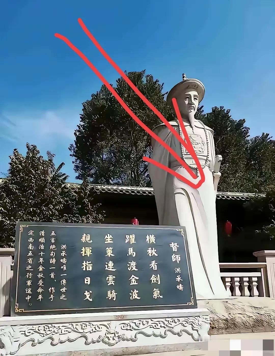 马踏朱由榔,困龙泥潭中!堂堂南明永历皇帝趴在泥地里,被马脚踩踏,而洪承畴塑像则高高耸立,光彩照人,可悲可叹!除了塑像作者袁熙坤可能需要质疑,因为有旅日经历,且污化永历帝,审批这个项目的人也有不可推卸的责任,工作马虎失职,污化历史,不分是非。需要查查。