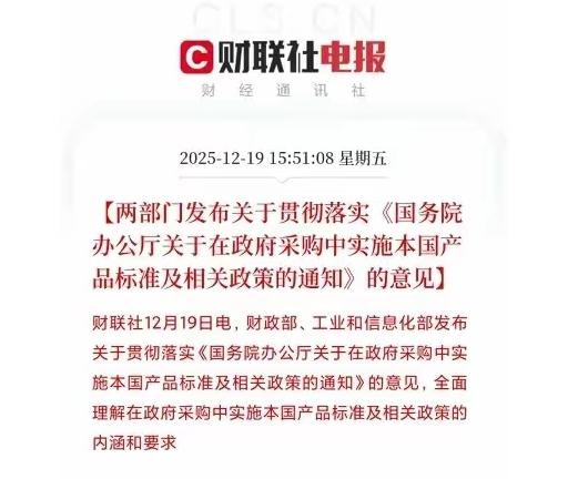 重大消息!财政部和工信部今天联手发文!从明年起,政府采购要优先买国货了! 这不是简单喊口号,而是给出了实实在在的标准和优惠,比如给本国产品最高20%的价格评审优惠。 可能有人不太明白这20%的优惠到底意味着什么,简单说,要是一款国货和一款进口产品竞标,国货报价哪怕比进口货高20%,评审时都会按扣除优惠后的价格算。 这么一来,本土企业在价格竞争上的优势一下子就凸显出来了。 而且这优惠不是一刀切的,分了不同情况,针对货物和服务采购,小微企业能拿到10%-20%的价格扣除;要是大中型企业和小微企业组队投标,也能享4%-6%的优惠,工程项目的优惠幅度是3%-5%,同样诚意满满。 文件里还明确了国货的认定标准,不是随便贴个标签就算数,得是在国内生产、核心零部件来自国内,还要符合国家相关质量标准的产品,这既保证了优先国货的导向,也避免了一些企业钻空子。 为啥现在要出台这样的政策?了解情况的都知道,之前有些政府采购项目里,确实存在“崇洋”的情况。 明明本土企业有能力生产,质量也不差,可就是因为一些片面认知,进口产品往往能轻松中标,还常常卖出高价。 就拿办公设备来说,有些单位非进口品牌不买,同款配置的电脑,进口的比国产的贵好几千。 纳税人的钱花得不明不白,本土企业还被挤压了生存空间。这种情况,早就该改改了。 这次政策落地,对本土企业来说绝对是雪中送炭,尤其是中小企业,之前面对国际大品牌的竞争,几乎没什么胜算。 现在有了价格优惠的加持,终于有了公平竞争的机会,也能更有底气投入研发、提升品质。 有做机械设备的企业负责人就说,之前参加政府采购竞标,好几次都是因为报价比进口品牌高一点而落选。 现在有了20%的优惠,他们的产品性价比优势一下就出来了,接下来打算扩大生产线,好好把握这个机会。 从市场层面看,这政策会倒逼整个行业升级,本土企业有了政策支持,不用再靠低价恶性竞争,而是会把精力放在提升产品质量和技术水平上,长期来看,能推动国内产业链更完善、更有竞争力。 可能有人会担心,优先国货会不会影响市场竞争? 其实完全不用,政策只是给了本土企业公平竞争的机会,不是搞保护主义,要是进口产品确实在技术上有不可替代的优势,依然能参与采购,只是不能再靠品牌溢价轻松中标了。 放眼国际,这样的做法也很常见,美国早就有《购买美国货法案》,要求联邦政府采购必须优先选美国本土产品,还规定了最低的本土成分比例,欧盟也有类似政策,核心都是为了保护本土产业、保障产业链安全。 更深一层看,这政策背后是保障国家产业链供应链安全的考量,现在国际环境复杂,很多核心技术和产品都存在“卡脖子”风险,通过政府采购的导向作用,扶持本土企业发展,才能让产业链更自主可控,避免被别人卡脖子。 对咱们普通老百姓来说,这也是件好事。本土企业发展起来了,能提供更多就业岗位,产品质量提升了,价格还更亲民,而且政府采购的钱来自税收,优先买国货,相当于把纳税人的钱用在了支持本国经济发展上,形成良性循环。 当然,政策落地还需要完善的监管机制,得确保优惠政策真正落到实处,不被滥用,还要加强对采购过程的监督,保证公平公正,只有这样,才能让政策真正发挥作用,推动本土产业高质量发展。 政策的出台只是开始,后续还需要企业、市场和监管部门共同努力,本土企业要抓住机会提升自身实力,不能只靠政策优惠;市场要形成良性竞争的氛围;监管部门要把好关,让政策真正惠及优质企业。 说到底,优先国货不是封闭保守,而是为了更好地发展自己,只有本土产业强大了,我们在国际竞争中才能更有底气,这样的政策,既守护了国家产业链安全,也惠及了企业和百姓,值得点赞。 大家觉得这个政策能给本土企业带来多大改变?你身边有哪些优质国货值得被认可?欢迎在评论区聊聊你的看法!