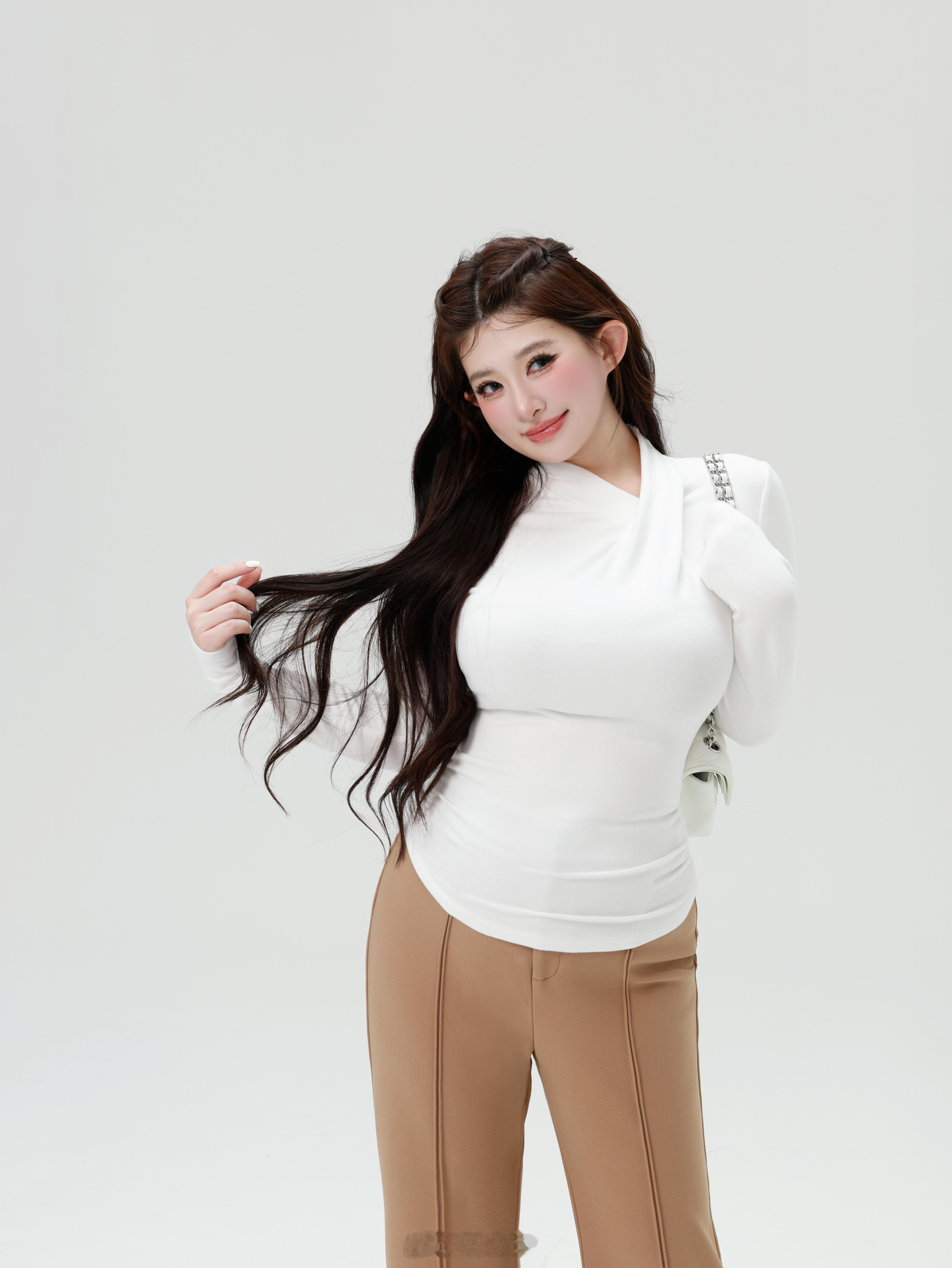 一眼爱上的西梅Tee 巨舒服的面料!!!🍇🐑羊绒触感 软乎乎的 亲肤保暖 秋冬必入打底这个紫色是定染丁香紫 区别市面上普通的紫✅是带点西梅调的温柔雾紫色〰️〰️黄皮穿都巨显白 衬得肤色嫩嫩的🎀🫧温柔感满满~领子小设计很戳我就是有一种什么都没漏但是又特别有味道~腰部还有自然的收褶 显瘦是当然的啦!!!