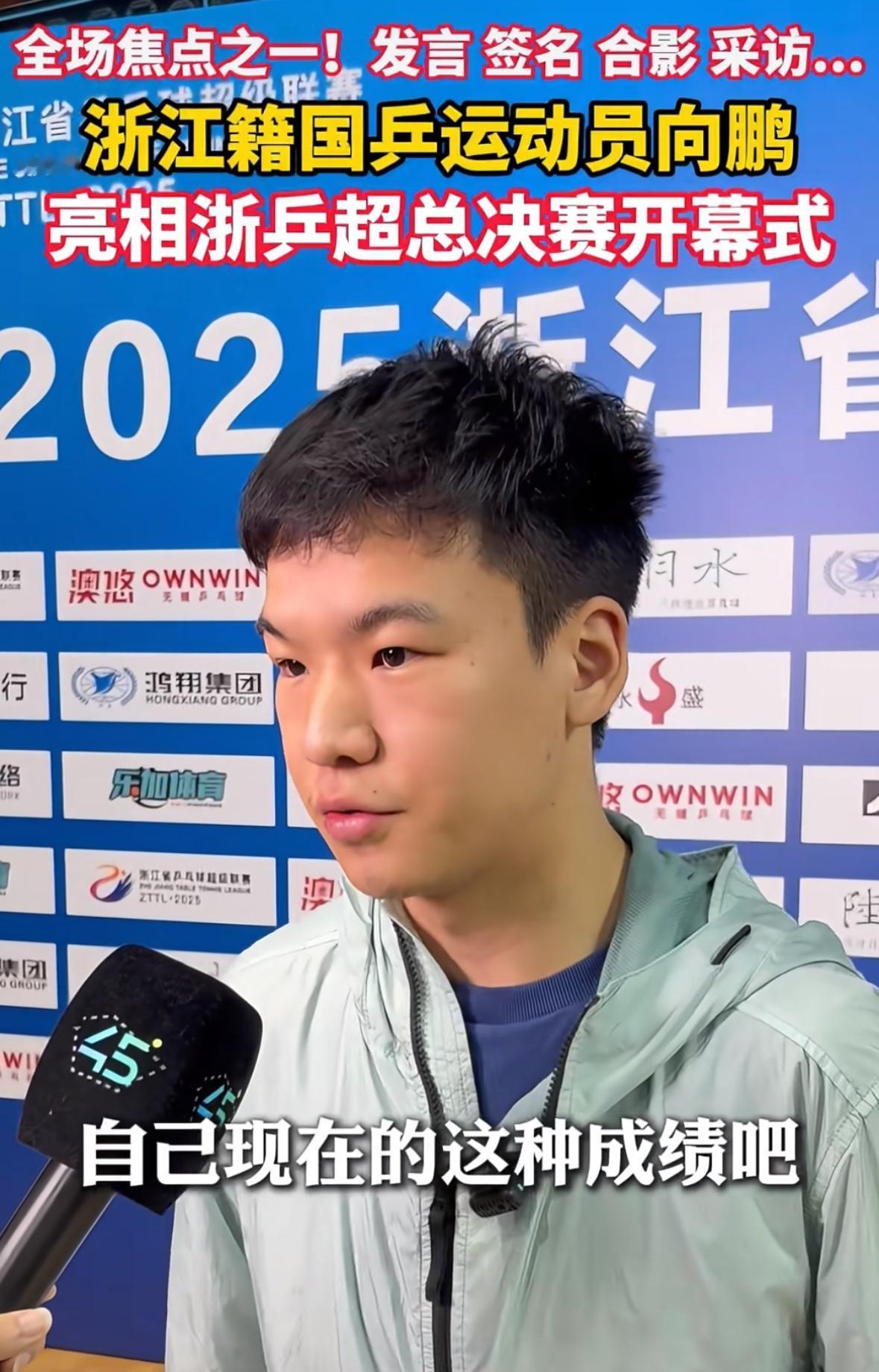 向鹏亮相浙江乒超总决赛开幕式 12月20日,浙江乒超联赛开赛! 教练竞聘, 陈振江教练可以带向鹏, 好多球员找向鹏签名, 向鹏也成为了焦点, 发言,合影,采访: “通过这样的比赛, 来提升自己的实力, 才有今天的这种成绩, 自己再次回到家乡, 还是感到非常亲切, 也是非常感谢这个比赛, 能让我们有更多的机会….. 向鹏最近表现不错👍, 在北京大满贯赛事中, 和王楚钦打的难舍难分, 2026年,向鹏加油, 继续保持状态,创造出属于自己的辉煌!