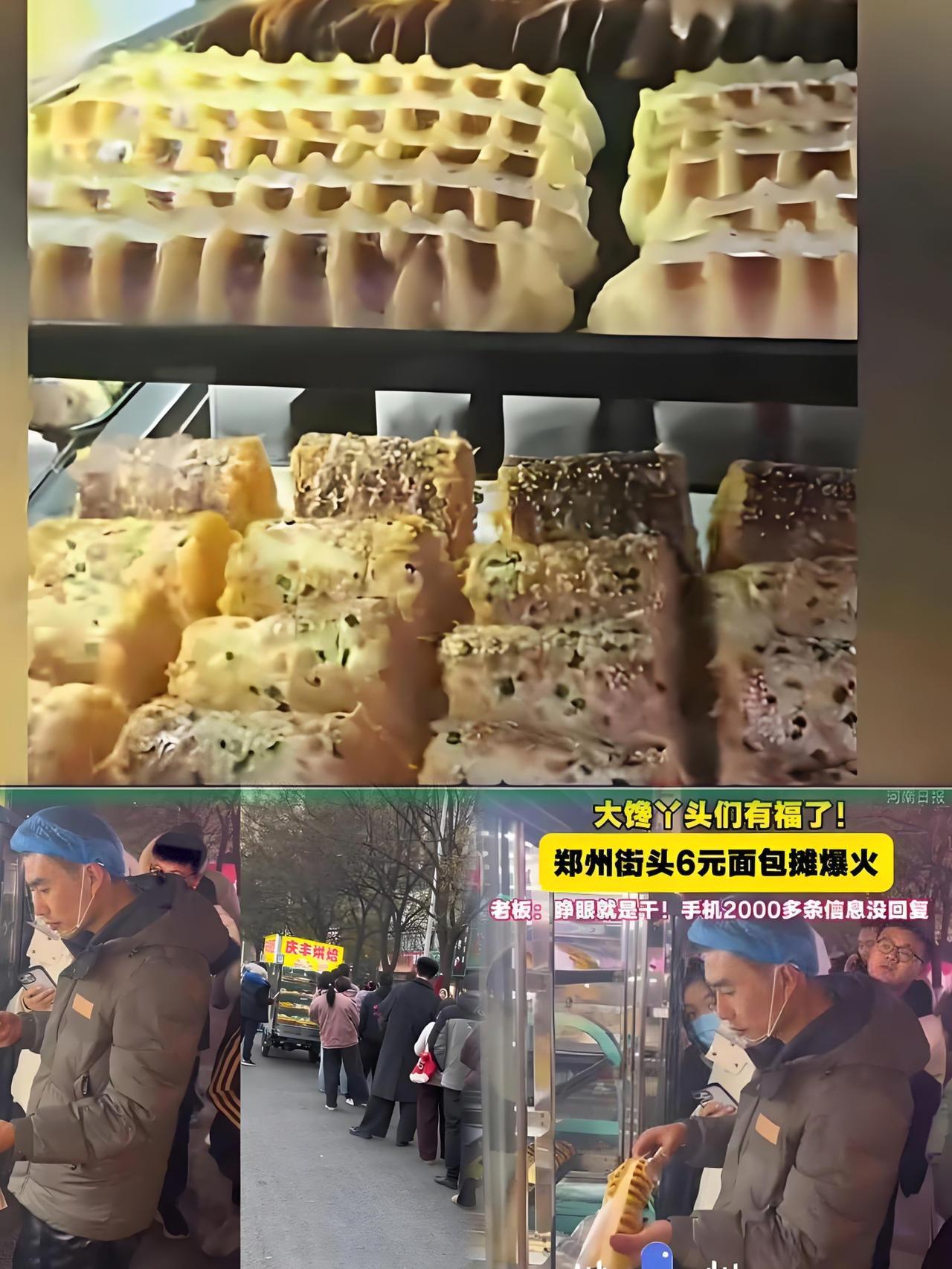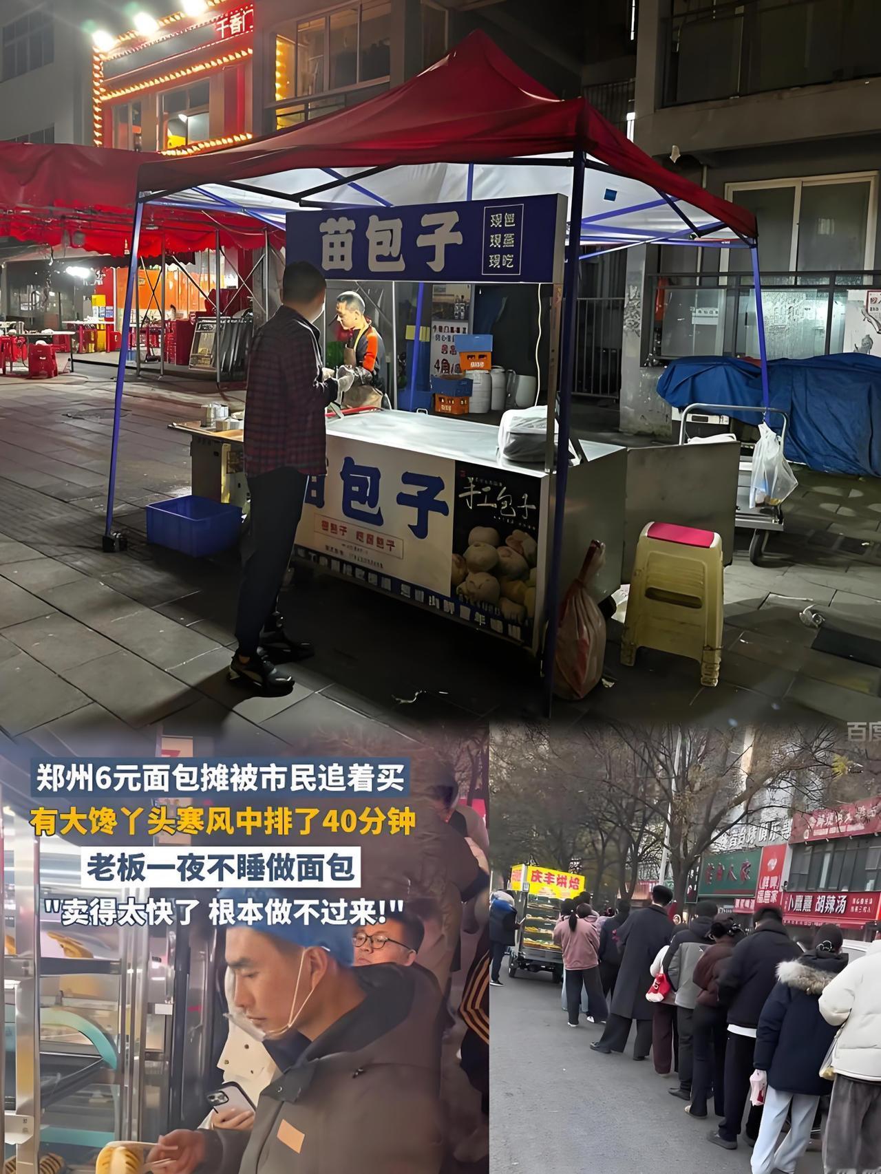 郑州6元面包摊彻底出圈!一块平价现烤面包圈粉无数,成了当下最火的市井爆款,连小朋友都骑着电动车追着摊位买,这段暖心视频三天就火遍全网,推送量直接突破200万次。 这家小摊的老板是张师傅,靠着三代传下来的老式烘焙手艺做面包,性价比高到让人惊喜。摊上大部分面包通通6元一个,最贵的肉松培根款也才12元,比连锁烘焙店便宜一大截。别看定价亲民,用料却一点不糊弄,坚持用新西兰安佳黄油、王后高筋面粉,全程无添加剂,每一个面包都个头扎实,馅料满到快要溢出来,尤其是蓝莓味的,酸甜果馅顺着裂口往下淌,实打实的好味道,单个利润却还不到1块钱。 走红之后,小摊销量直接暴涨十倍,从前一天卖200个,现在一天能卖2000个。每天凌晨五点,天还没亮寒风正烈,小摊前就排起了数十米长队,上班族赶早来抢早餐,老人专程来寻鲜,还有人跨城赶来打卡,热门口味刚出炉就被一扫而空。为了跟上需求,张师傅每天深夜十一点就钻进15平米小作坊备料,凌晨一点开始和面发酵,通宵赶工到收摊,双手揉面揉得泛白起皱,手上还留着烤箱烫伤的水泡,累到揉面时差点晕倒也咬牙坚持。 即便供不应求,张师傅也始终不涨价、不偷工减料,累到极致也只停业两天休整,这份真诚让小摊拿下67%的高复购率。如今社区也主动帮忙,协调闲置厂房帮他扩大产能。没有花哨包装,不靠刻意营销,这份平价又优质的坚守,不仅戳中了大众对高性价比好物的期待,更让大家看清,真诚才是永远不过时的流量密码。