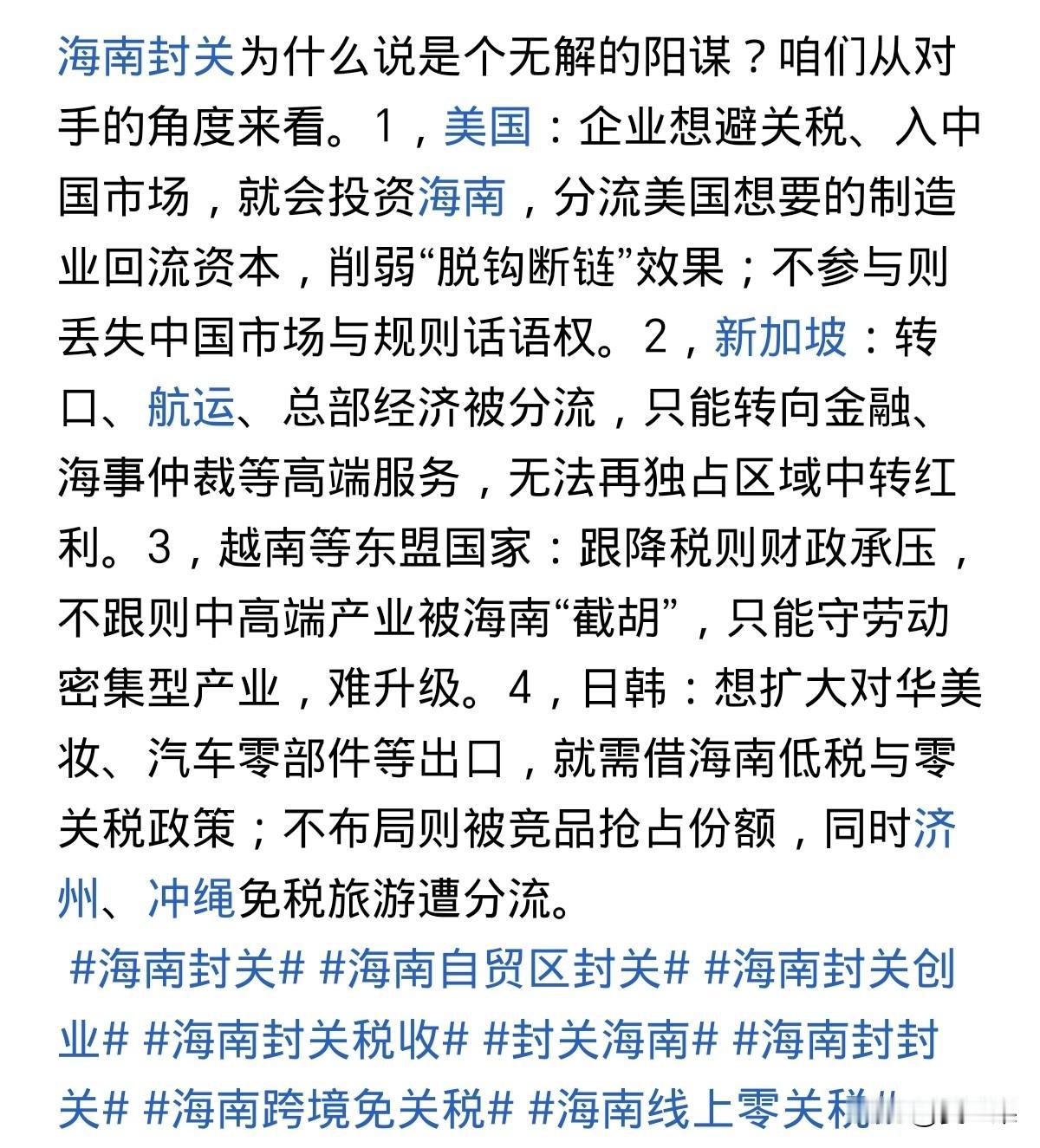 突然懂了,为什么新加坡对我们不太友好,海南封关有着巨大的战略意义。