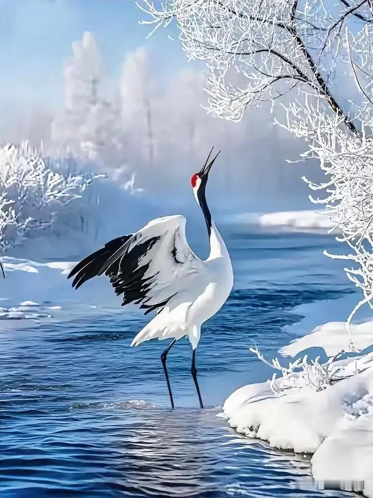 雪中仙鹤翩跹舞,水畔孤影自悠长。夕阳湖景照仙鹤洁白仙鹤仙鹤飞翔湖中仙鹤仙