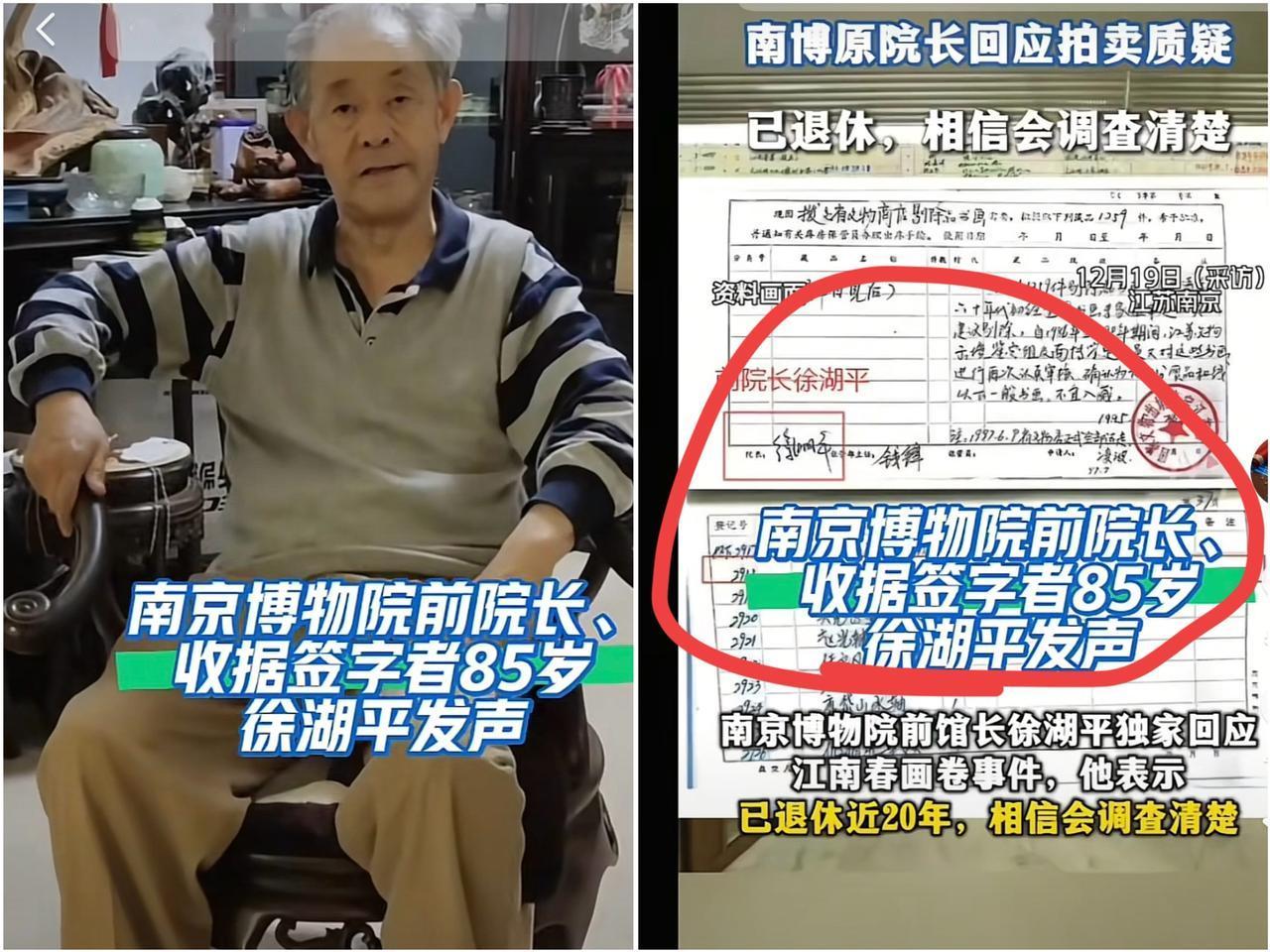 八十岁的前南京博物院院长徐湖平, 这回是真坐不住了! 他急忙发声明撇清关系,说自己退休二十年,早就不管院里的事,这次捐赠品的乱子跟他毫无关联。 可网友的爆料直接戳破了这番说辞,1997年他亲笔签字,把赝品《江南春》调剂到文物总店,还以6800元的低价卖给神秘买家的照片被翻了出来。 早在2012年,就有南博职工实名举报他违规私调馆藏文物,只是当时的举报石沉大海,没人理会,面对质疑,他一句“我又不是专业鉴定家”就想推卸责任?要知道文物是全民共有的文化资产,院长的监管职责可不能一句外行话就抹去。 大家认为,这样的辩解能说得过去吗?评论区聊聊?