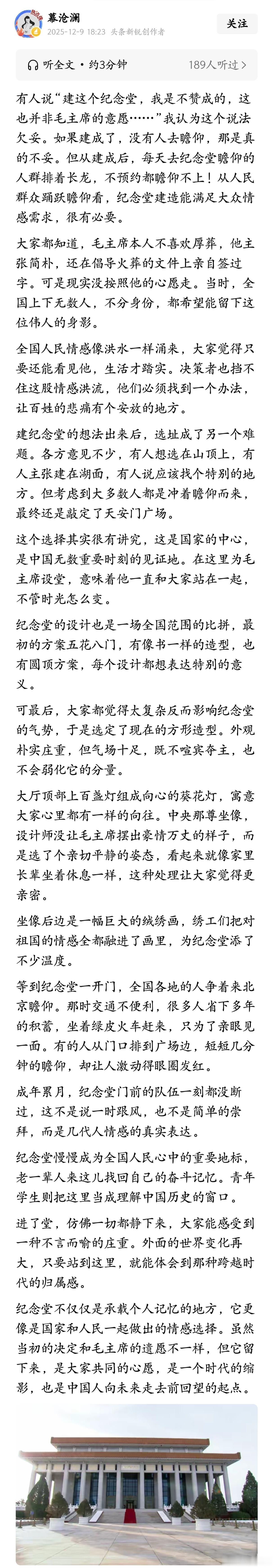 毛主席纪念堂不仅仅是承载个人记忆的地方,它更像是国家和人民一起做出的情感选择。虽然当初的决定和毛主席的遗愿不一样,但它留下来,是大家共同的心愿,是一个时代的缩影,也是中国人向未来走去前回望的起点。