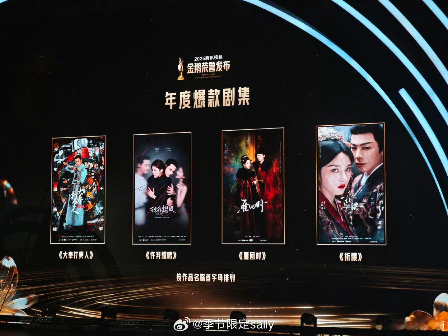 恭喜《大奉打更人》、《许我耀眼》、《雁回时》、《折腰》获得2025金鹅荣誉年度爆