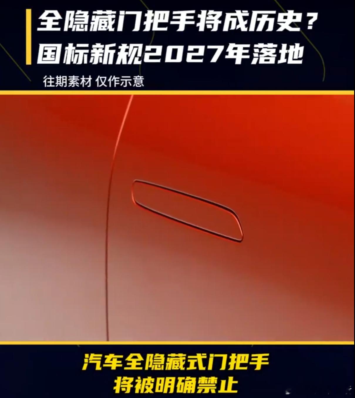 明确禁止全隐藏式门把手 为门把手新规疯狂打call!全隐藏门把手要退场啦~ 2027年新车必须带机械把手,断电、事故时徒手就能开门,这才是真·保命设计!之前总怕冻住、断电弹不出来,救援都没法下手,颜值哪有安全重要?新规划清安全底线,科技感也要照顾安全感才行,这波监管太给力~