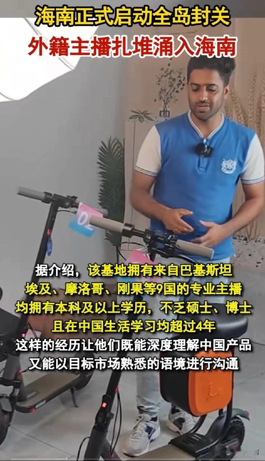 海南岛正式启动全岛封关, 以后这里面就是贸易区了, 这瞬间吸引了很多的外籍主播, 这些人都是来自巴基斯坦,埃及,摩洛哥,刚果金,印度等国家, 而且都有本科及以上学历,不乏硕博, 并且在中国生活学习长达四年, 这条件一出直接大家都明白了, 说白了这些外籍主播就是在中国留学的那一批留学生, 上学不要钱还有高额奖学金, 生活上还有生活补助, 本科及硕博基本都在混日子, 如今毕业之后还得安排工作, 美美的都去当了跨境电商主播, 将中国的商品介绍给本国的国民, 工资也是相当的高, 留学生的上学就业问题真是一条龙解决了,完善的服务给他们带来了很好的体验,以后就会有更多的学生愿意来国内留学,毕竟不用花1分钱,还能挣好多, 国内其实是有很多英语专业毕业的人才,他们也是可以去做跨境电商, 只不过没有人家留学生竞争力大, 毕竟人家老外皮肤自带天然优势, 大家对于外籍主播扎堆海南跨境贸易怎么看? 老外的那些事 海南封关 海南自贸区封关 海南封关税收 封关海南 海南封关创业 海南岛封关买房