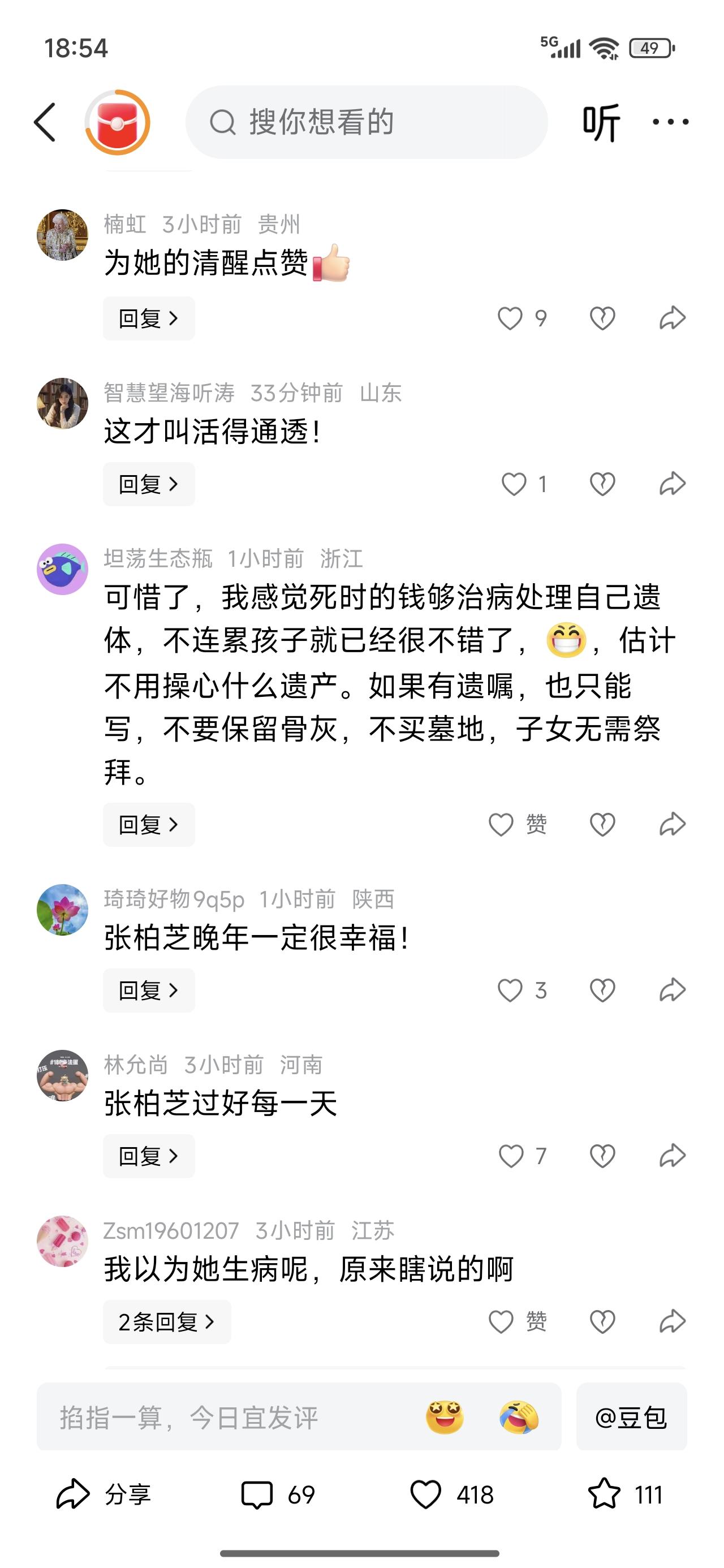 你能信这话是张柏芝说的?她说:“我已经写好遗嘱了,也挑好了死后要穿的衣服,和要用的遗照了,因为我不想我死后,家里人为了钱闹得很难看,所以我提前做好准备,随时都可以走。” 草🌿啊!港台明星也太明智了!就这觉悟,我特么还得修炼两千年! 她还说她活着的时候尽力的爱了他们,死了以后,孩子们也要学会努力的爱自己。所以她没有遗憾。 这个通透的女人是80年的,小时候父亲赌博,她也过过苦日子。 后来有钱了,她提前把遗嘱立好,避免所有的亲属在遇到一笔巨款的时候面目狰狞。提前备好,谁也不能闹腾,各自拿去属于自己的那部分就好。 祖奶奶,真的好厉害。人家是为了不起争执。财产容易分。 咱还是算了吧!三瓜俩枣,还不知道咋嘚瑟好了,不用了,不用了。 柏芝三个孩子两个爹,有一个还不能说是谁的种。人却这般清醒。 前夫哥的现任,菲妃,两个孩子两个爹,只有真爱没给生。 人啊,到底咋样子才是活的好!谁有发言权!都来说说吧!都有。
