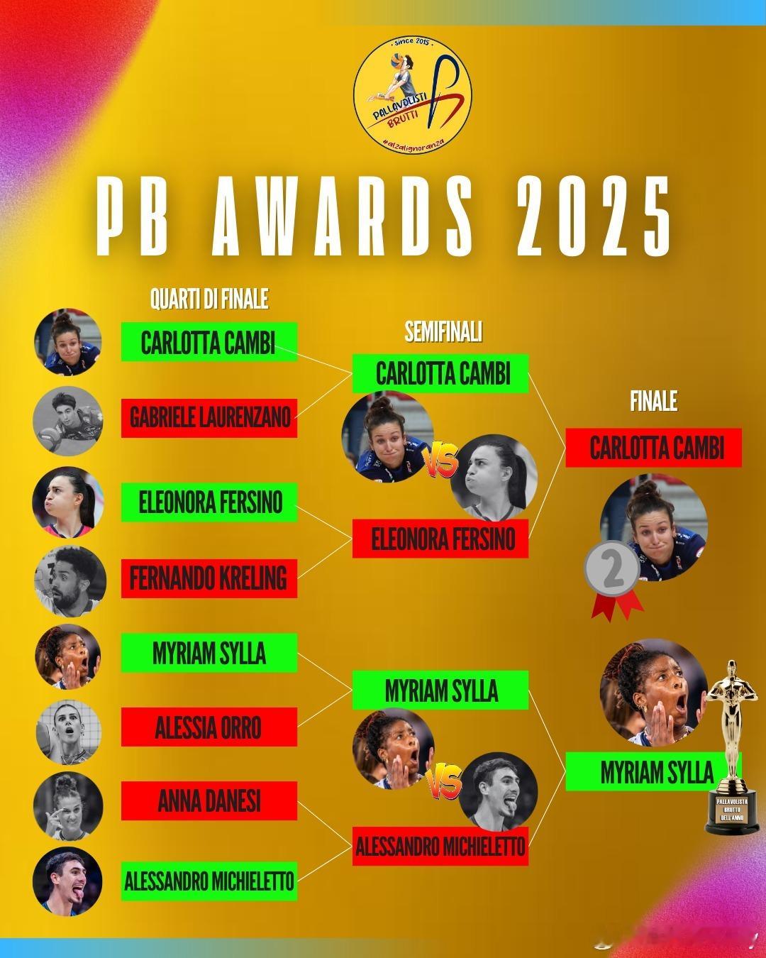 塞拉斩获意大利“Pallavolista Brutta”金奖,坎比获得银牌。塞拉在评选中首先PK掉了奥罗,然后再PK掉了男排名将米切莱托,最后击败坎比夺冠。这是意大利排球网络社区中一个特定的、带有讽刺和恶搞性质的“奖项”或“梗”。不代表对运动员的任何负面评价。塞拉是排球界妥妥的搞笑女王,性格很nice。女排国际排坛动态