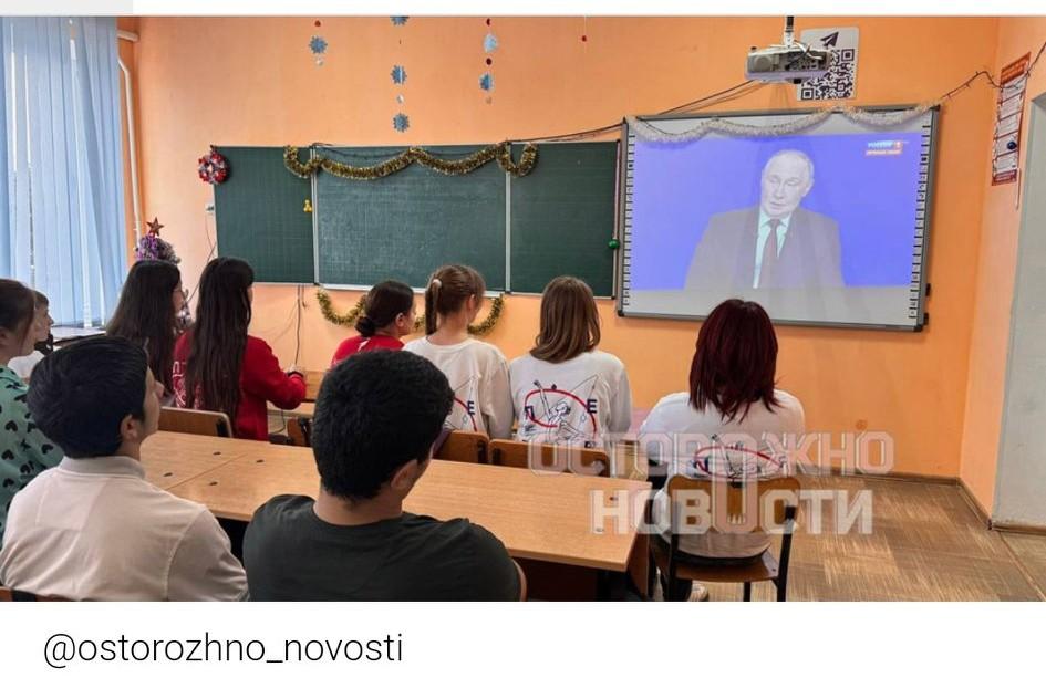 俄要求全国中小学生📚收看普京“直播连线”📺(прямая линия) 据“谨慎,新闻”梳理各校社交页面照片与报告,各地学校组织学生集体观看普京年度连线,部分场合连教职工👩🏫与孩童一同到场。 该频道指出,类似“年终总结”收看活动还在大学🏫、技职学院、图书馆等公立机构展开,管理层按上级机关指令在社媒发布图文汇报。
