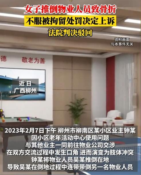 广西柳州,一女子因小区老年人活动中心使用问题,与物业工作人员起了冲突。争吵过程中,女子推了工作人员一下,导致对方摔倒至肋骨骨折。警方认为女子殴打他人,于是对其作出行政拘留5日的处罚,但女子认为自己是被冤枉的,自己只是推了对方一下,并不是暴力殴打,于是将公安机关告上法院,要求撤销处罚。(来源:柳州市中级人民法院) 据悉,女子钟某所住小区的配套设施还算不错,业主们活动的场所蛮多的,老年人还有专属的活动中心,然而就是这个老年活动中心,经常成为业主们争执的焦点。 钟某等几位业主因为对老年人活动中心的使用安排问题表示不满,认为物业人员没有合理的规划这个活动中心,影响了大家的日常休闲活动。 2023年2月7日下午,物业办公室内,钟某带头的几位业主和物业工作人员围坐在一起,开始对老年人活动中心的使用规则问题进行探讨。 起初,大家还能心平气和地表达自己的想法,但说着说着,双方就因为意见不合吵了起来。 钟某的情绪异常激动,她认为自己才是业主,物业只是服务人员,没资格对业主指手画脚,甚至辱骂业主。 在愤怒的驱使下,钟某再也控制不住自己,猛地伸手用力推了物业工作人员吴某一下。 吴某没想到钟某会突然动手,一个没站稳就摔倒在地上。而在吴某倒地过程中,还带倒了另一名同事,现场顿时乱作一团。 有工作人员立即报了警,并打了120电话。之后,吴某被送往医院救治。经诊断,吴某右侧第6根肋骨骨折,身上还有多处软组织挫伤。 事发后,当地公安机关指派民警到现场处理,在了解情况后,民警将钟某在内的几位业主和物业工作人员带到派出所调解。期间,钟某明确表示是吴某先骂人,自己才动手推了吴某一下。 次日,吴某到公安机关报案,称自己被钟某打伤了。公安机关依据调查结果,告知钟某将对其进行行政处罚,并询问钟某是否要申辩,而钟某明确表示不需要陈述和申辩。 当天晚上7点多,公安机关以钟某故意殴打吴某为由,作出了行政拘留5日的处罚。 然而钟某对这一处罚决定不服,认为自己只是轻微推搡了吴某一下,并不是殴打,所以警方认定事实错误,适用法律错误。 之后,钟某将公安机关告上了法院,要求撤销处罚。 《治安管理处罚法》第43条第1款规定,殴打他人的,或者故意伤害他人身体的,处5~10日拘留,并处200~500元罚款;情节较轻的,处5日以下拘留或者500元以下罚款。 这里所说的“殴打他人”,是指行为人主观上以造成他人暂时性肉体疼痛为目的,客观上的特征为未破坏人体组织完整性及器官正常机能。 殴打他人通常表现为拳打脚踢,或者使用棍棒等器具殴打他人,但其实从是并不局限于这些行为,只要使得他人在肉体上有疼痛的感觉,就符合殴打他人的特征。 因此,钟某虽然只是推了吴某一下,但这一下却导致吴某的肋骨骨折,如果说钟某只是轻微推一下,不太可能达到这个损害结果。 法院认为,钟某的确存在过错,即便发生纠纷也不该动手殴打他人。 法院还认为,吴某自己也有过错,解决问题不该出现辱骂他人的情况,而正是因为吴某骂人,才导致钟某动手推了吴某。 不过,法院认为,吴某骂人的过错只能作为减轻对钟某处罚的条件,并不能作为免除对钟某违法行为处罚的条件。 公安机关在作出行政处罚之前,已经明确告知钟某可以陈述和申辩,但钟某自己选择了放弃了陈述和申辩,所以这个后果应当由钟某承担。 此外,公安机关是以违法情节较轻对钟某作出的处罚,处置公平公正,程序合法。 综上所述,法院判决驳回了钟某的全部诉求。 钟某不服一审判决,提出上诉。但二审法院认为,钟某主张不存在殴打吴某的行为,与警方调查的事实不符,故判决驳回了其上诉请求。 最后,此案也告诫大家,不论发生何种矛盾,都要控制住自己的手脚,不要想着靠暴力解决问题,这反而更容易让矛盾激化,引发更为严重的后果。