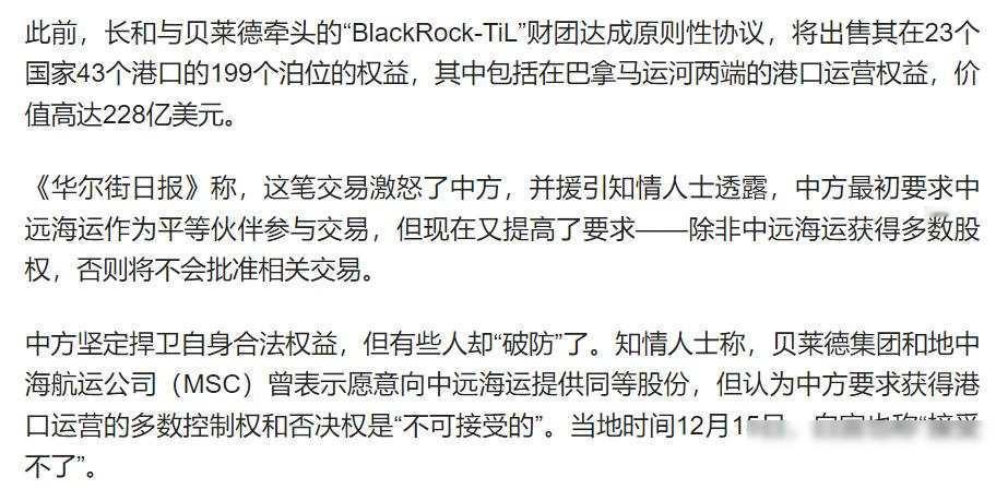 中方突然强势,巴拿马港口交易再生变,美国为何不打委内瑞拉? 最近听说中远集团在巴拿马港口出手了,直接要拿下那个228亿美元项目的控股权,这事挺让人注意的,以前中国企业跟外国公司合作,大伙儿都是分着干,现在却要自己说了算,连贝莱德这样的华尔街大玩家都拦不住。 拉美的货轮天天从巴拿马运河进出,巴西的铁矿、智利的铜、阿根廷的牛肉,最后都得靠这几个港口装船,要是美国人握住了这些地方,咱们的外贸就容易被卡住,中远这次直接说清楚了,你可以入股,但门闩得攥在咱自己手里。 贝莱德这次真有点扛不住了,他们在咱们这儿还做着基金生意,真要硬刚起来,上海深圳的门一关,啥都没了,这让我想起德国人以前在乌克兰吃过的亏,能源被人掐住脖子,再大声喊话也得认,现在华尔街大概也明白了,资本玩了这么多年,规矩悄悄变了。 有意思的是美军在委内瑞拉那边的处境,一万两千人,几十艘军舰,看着挺吓人,可就是靠不近作战区,为啥呢,人家天上飞着咱们帮着造的卫星,地上摆着俄式的电子干扰设备,美军的GPS一下就断了,像被人抽了筋骨,这哪是打仗,分明是被高科技打得找不着北。 最近中美军方在夏威夷和华盛顿开了两次闭门会,没说具体啥事,但看样子是在收拾之前的烂摊子,我们在拉美那边动静不大,修港口,铺光缆,建铁路,表面上看都是普通生意,可把这些地方连起来,就像悄悄织了一张网,货轮往哪走,数据往哪传,通信靠啥,全都被这张网串在了一起。 最厉害的是这招不显山不露水,不像美国动不动就派航母晃悠,咱们直接掐住供应链的关键环节,谁想玩资本游戏,都得先掂量掂量中国这边会怎么接招,贝莱德们当然想回来,可棋盘已经换了,规则也跟着变了。 现在回头看看,美国总说要掌控西半球,可从港口到卫星系统,关键地方早被人占了,这不是靠打仗拿下的,是十年一寸一寸铺出来的基建,以前觉得大国角力离咱很远,可如今看货轮航线、港口股份,才明白每一步棋都牵着明天的物价和饭碗。