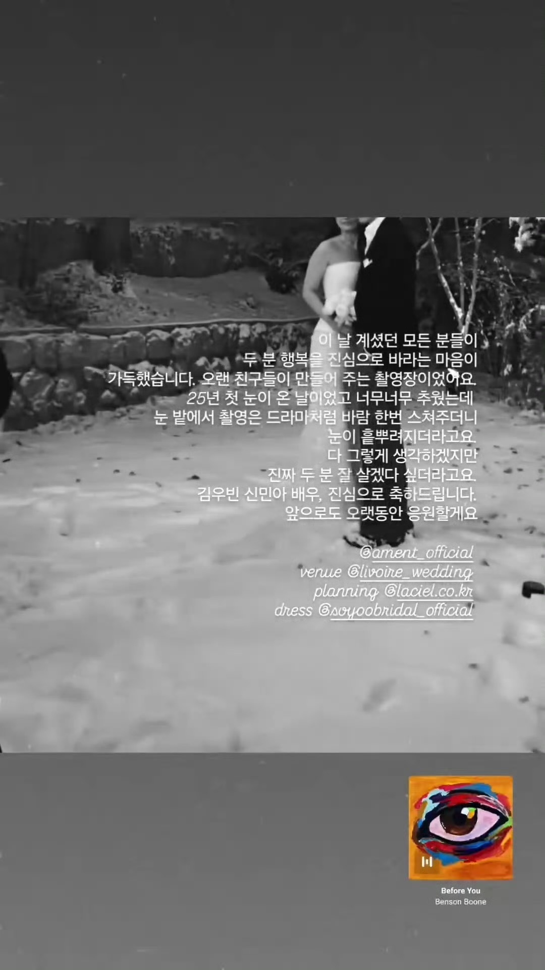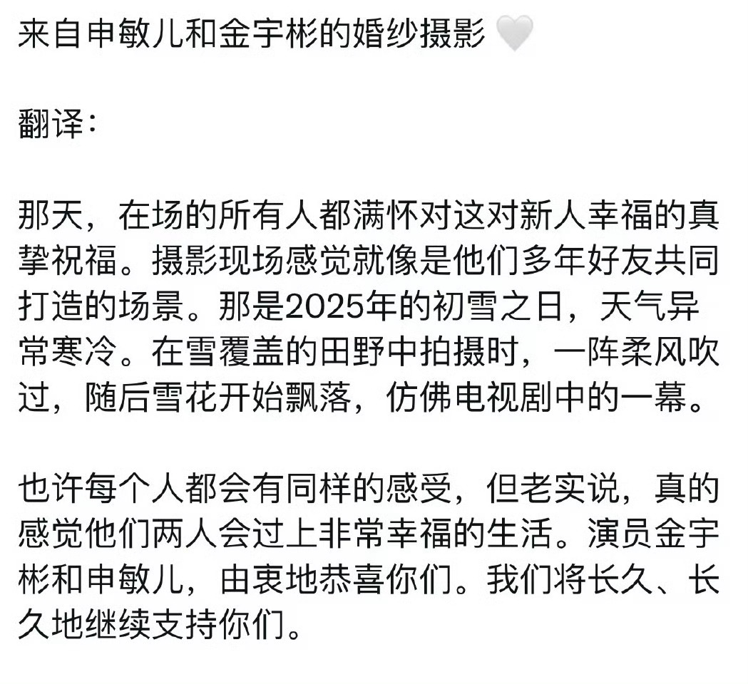 金宇彬申敏儿在初雪拍婚纱照 好浪漫老天都在祝福这对!