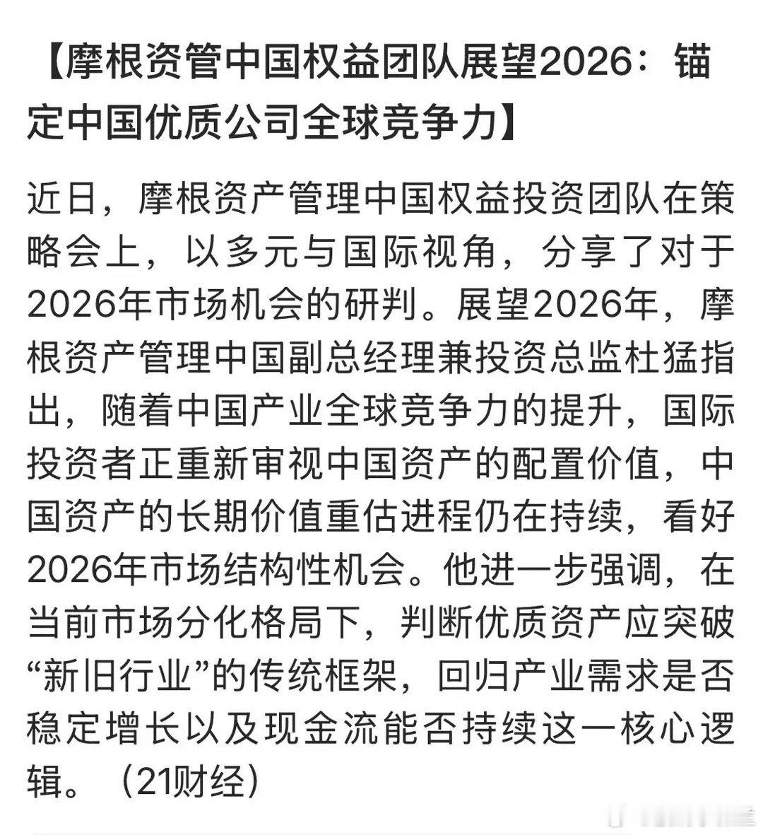 2026年即将来临之际,就有国际投行以锚定中国优质公司,作为自己的全球竞争力!人工智能、航天航空、量子通信、脑机接口、无人机、机器人等等科技企业的赋能中国经济发展最为有力的基石 ,是因为国际投行看到我国科技发展的潜力和前景,完全有理由锚定中国优质公司作为自己在全球竞争中的优势地位。看好中国,就在投资中胜过85%的投资者,买入中国优质资产就会胜过投资任何国家资产,100%可以在投资中获得丰厚回报!