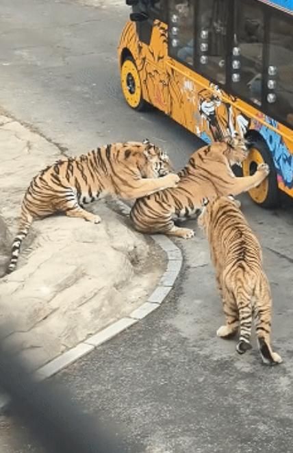 “笑不活了,老虎冲上热搜了!”辽宁某动物园老虎看见观光车路过,上前一口咬住了车轮胎,本以为它咬一下就会松口,不料,牙齿竟意外的勾在轮胎上拔不下来了! 司机见状前后慢慢转动轮胎也无济于事,虎同伴赶紧上前帮忙。 一辆观光车慢悠悠地在园区的老虎活动区域行驶,车上的游客正举着手机,准备拍一拍老虎的日常。就在车子路过一处树荫时,这只老虎突然从树后窜了出来,显然是被观光车移动的动静吸引了。在它的认知里,园区里会动的东西,要么是值得捕猎的猎物,要么是能打发时间的玩具,于是它猛地冲上去,对着车后轮就来了一口。 那架势,那气势,简直是狩猎本能拉满,牙齿狠狠嵌进橡胶里,周围的游客都以为它就是咬一下过过瘾,很快就会松口继续溜达。 结果谁也没想到,这一口下去,直接让老虎陷入了“卡BUG”的尴尬境地。观光车的轮胎为了防猛兽撕咬,外层特意做了加厚橡胶处理,还带有防滑的纹理,没成想这层防护橡胶反而成了老虎的“绊马索”。 不知道是咬的角度太刁钻,牙齿刚好卡进了橡胶的纹理缝隙里,还是它一股倔劲儿上来,非要跟这个“会动的黑圈圈”较劲,总之就是牙齿勾在上面,怎么拔都拔不下来了。 驾驶员也是又急又想笑,不敢猛踩油门怕伤着老虎,只能小心翼翼地慢慢前后挪动车轮。 车轮一动,那只还没撒嘴的老虎可就惨了,脑袋被迫跟着车轮的方向晃悠,整个身体也随着惯性后仰,四条腿在地上蹬来蹬去,却怎么也挣脱不了。那模样哪儿还有半分森林之王的威风,活脱脱像只被沙发套勾住爪子的大号橘猫,滑稽得不行,车上的游客都忍不住笑出了声。 其实也不能全怪这只老虎“傻”。野外的老虎,牙齿是吃饭的家伙,每天要咬穿猎物的皮毛、粉碎骨头,既是捕猎也是在磨牙,这是刻在基因里的本能。可圈养在动物园里,情况就不一样了,每天到点就有饲养员送切好的精肉,软趴趴的没什么嚼劲,它一身的下颚力量和无处安放的磨牙冲动根本没处使。 好不容易碰到这么个有弹性、咬感十足还会动的轮胎,对它来说简直就是“五星级耐咬磨牙棒”,自然舍不得轻易松口。 就在这只老虎跟轮胎“死磕”,蹬着腿使劲往后挣的时候,旁边溜达过来另一只老虎。 这一幕瞬间让围观游客的脑洞大开,大家都脑补出了“兄弟情深”的救援大戏:“哎呀二弟,你这是被封印了?哥来救你!”可实际上,猫科动物的世界里,哪有什么见义勇为的复杂想法。这只凑过来的老虎,多半是出于好奇,“这家伙叼着个黑圈圈干啥呢,看起来挺好玩,我也想试试”,要么就是想趁机“截胡”,觉得这可能是个好东西,想分一杯羹。 结果这只老虎伸爪子扒拉了一下同伴的身体,好巧不巧打断了对方的发力节奏,那只卡牙的老虎瞬间就把牙挣脱出来了。本以为是“救援成功”,结果反转来了,刚脱困的老虎扭头就对着“好心扒拉”它的同伴呲牙低吼,那架势分明是在骂街:“你瞎凑什么热闹,没看我正忙着呢吗!”要不是驾驶员看准时机一脚油门溜了,这两只老虎高低得在现场打一架,为这桩“轮胎闹剧”再添点笑料。 更逗的是,看见观光车开走了,刚才还剑拔弩张的两只老虎,瞬间忘了刚才的“梁子”,屁颠屁颠地跟着车尾气跑了一段,似乎还没玩够。这段小插曲被游客拍下来传到网上,瞬间就火了。网友们纷纷调侃,有的说“这虎哥怕不是喝大了,把轮胎当烧鸡了”,有的担心“这牙没崩了吧,算不算工伤”,还有的调侃“建议动物园给老虎配点磨牙棒,别让它再霍霍轮胎了”。 这一幕让我们看到了猛兽最憨态可掬的一面。脱离了野性的滤镜,它们也有好奇心过剩的翻车现场,也有同伴之间因为没轻没重引发的乌龙误会。这只凭实力上热搜的“显眼包”老虎,用实际行动证明了:就算是山大王,犯起二来也照样接地气。 主要信源:(中安在线、中安新闻客户端 ——辽宁一动物园老虎玩轮胎牙齿被卡住,同伴好心救援反被打)