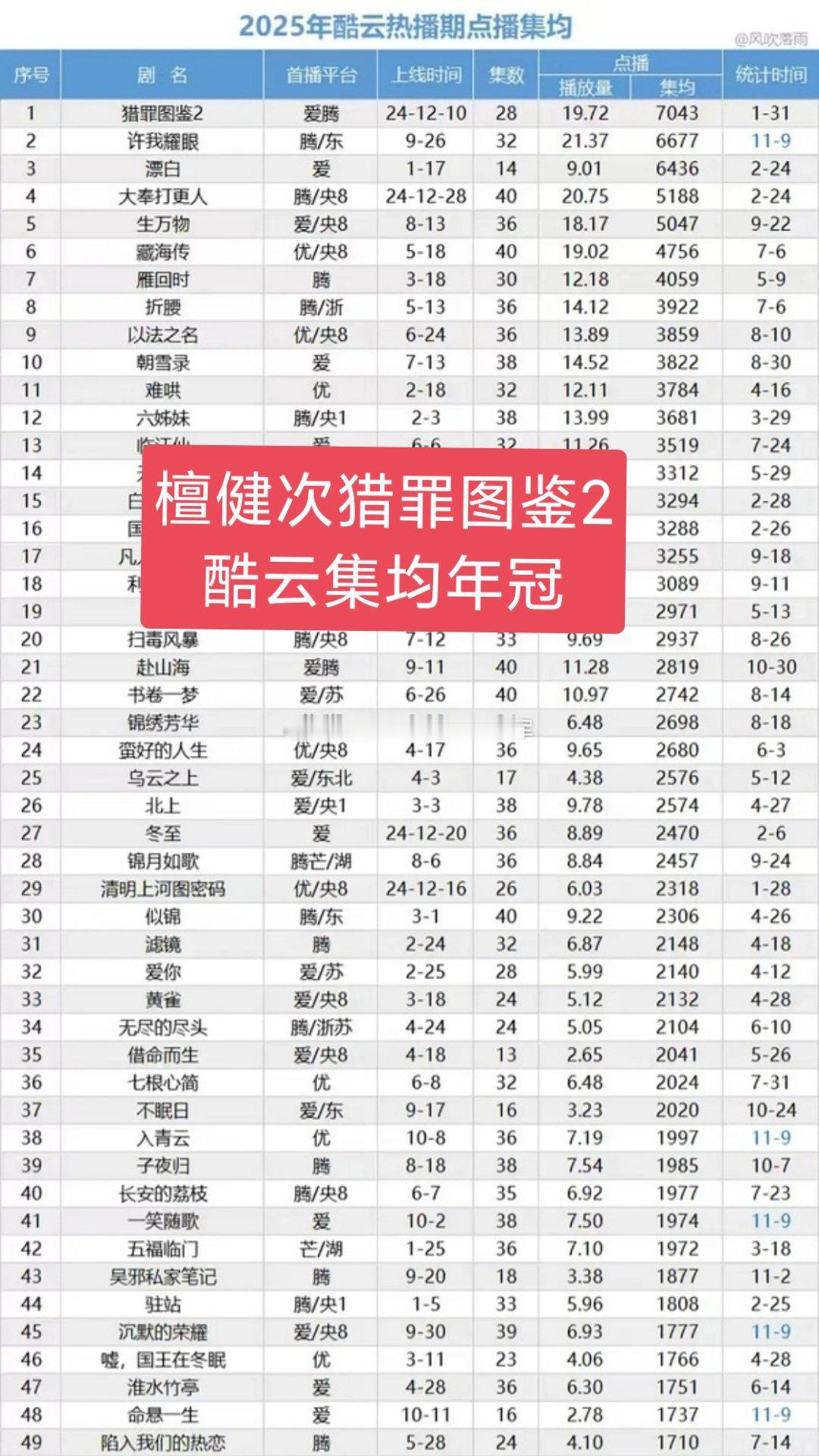瓣人在刷屏辩论到底哪个才是2025的年冠剧王,都是今年的出圈爆剧,其实无非就是在辩论哪一个限定词和榜单有说服力。檀健次《猎罪图鉴2》,肖战《藏海传》、赵露思《许我耀眼》肖战谈得闲谨制最好彩蛋檀健次 有需要抓拍教程的吗