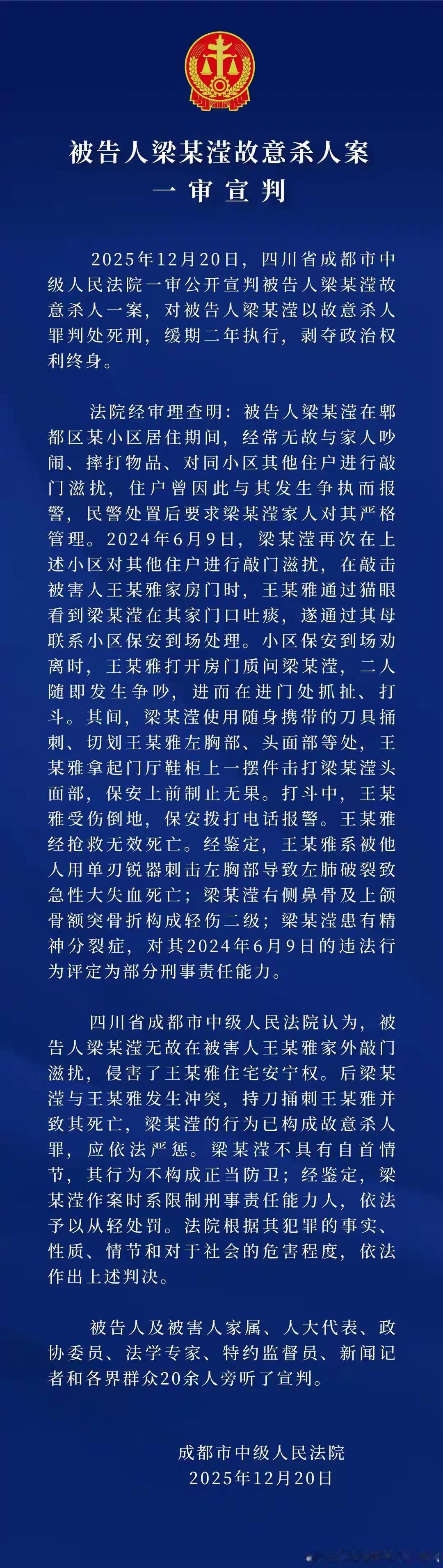 成都27岁女子家门口遇害案落槌:凶手被判死缓 在这个充满繁忙与温情的城市角落,一场令人扼腕的悲剧终于落下帷幕。27岁的成都女子,在家门口的平凡一刻,却成了命运的无情安排。她的遇害,曾让无数人扼腕叹息,也让我们不禁反思:在这个社会的角落里,安全究竟还剩多少底线?而正义的天平,是否还在我们手中摇摆? 这起案件的审判结果——凶手被判死缓,似乎给了我们一丝安慰,但更多的人心中却泛起了疑问。死缓,意味着什么?意味着一份生命的代价被压缩成了法律的数字,却难以抚平那份失去的悲痛。我们常常在新闻中看到“判决”二字,却忽略了背后那份沉甸甸的生命价值。 这起案件的背后,折射出的是社会的复杂与人性的善恶交织。我们是否还能在繁华的城市中,找到那份纯粹的安全感?是否还能相信,正义会如期而至?答案或许没有那么简单,但值得我们深思。 或许,很多人会觉得,判死缓已是最大公正的体现,但换个角度想,这样的判决是否也在某种程度上让我们对生命的尊重变得麻木?我们是否习惯了“案件结束即是结束”的快节奏生活,而忽略了每一个生命背后那份无法用金钱和判决衡量的价值? 更重要的是,这个案件让我们看到了一个社会的裂缝——人与人之间的信任在逐渐崩塌,安全感在逐渐流失。我们每天都在奔波、拼搏,却也在无形中被焦虑包围。一个小小的安全感的缺失,就可能让一个家庭的幸福瞬间破碎。 然而,正是这些悲剧,激发了我们对生活的重新思考。我们不能让恐惧成为常态,更不能让悲剧成为社会的常客。我们需要的是更多的关注、更多的关爱和更强的社会责任感。每一个生命都值得被尊重,每一次的安全都不应成为奢望。 这起案件或许只是冰山一角,但它提醒我们:社会的温度取决于我们每个人的努力。让我们用行动去守护那份属于每个人的安全感,用善意和责任,去弥补那些因为疏忽而裂开的心灵。只有这样,我们才能真正让这个城市变得更温暖、更有希望。 你怎么看?是不是也在心里暗暗发誓,要为自己和身边的人,撑起一片更安全的天空?欢迎留言,分享你的看法。因为,每一个声音,都是我们共同前行的力量。成都女孩遇害案 家门口遇害女子