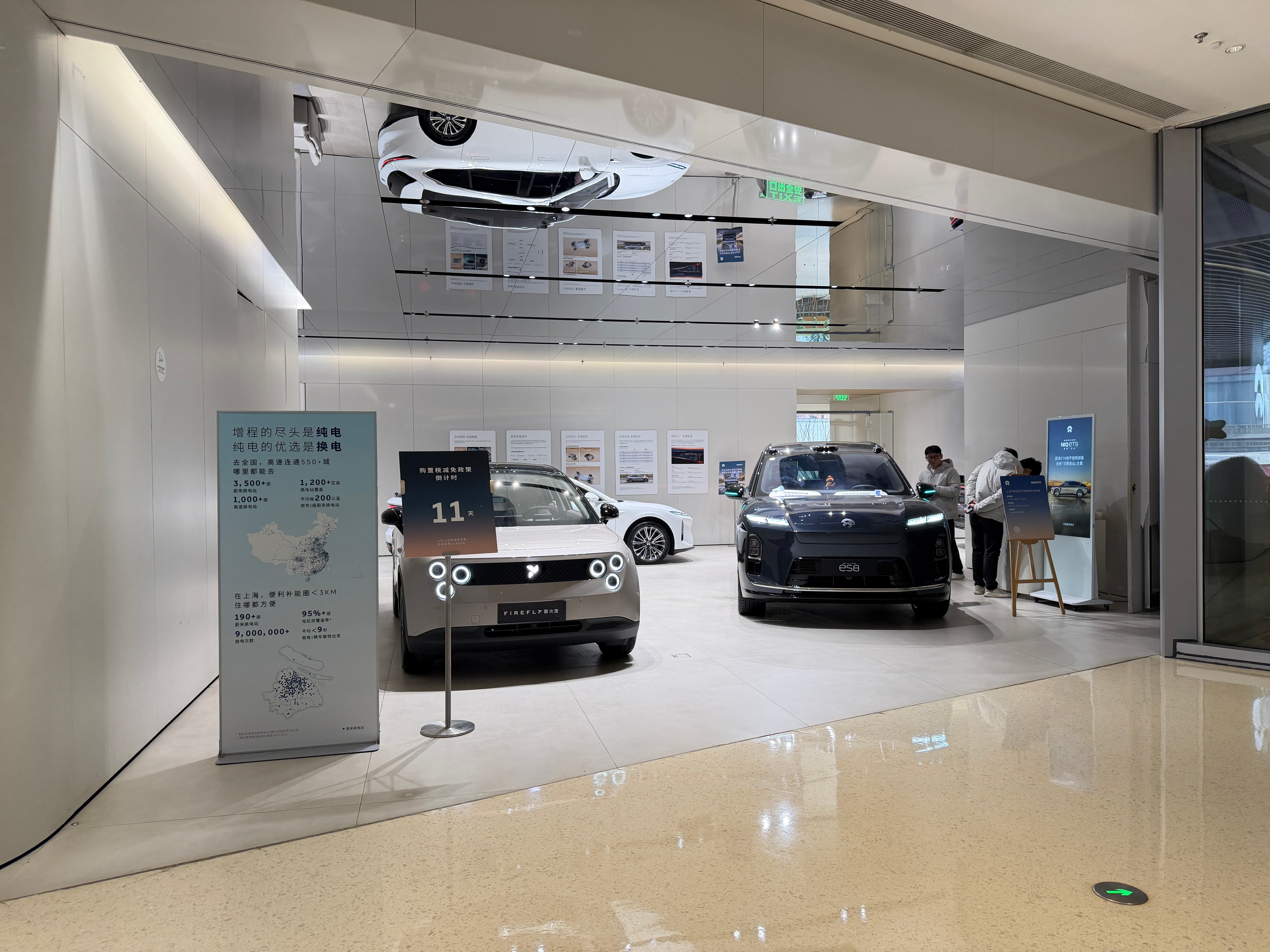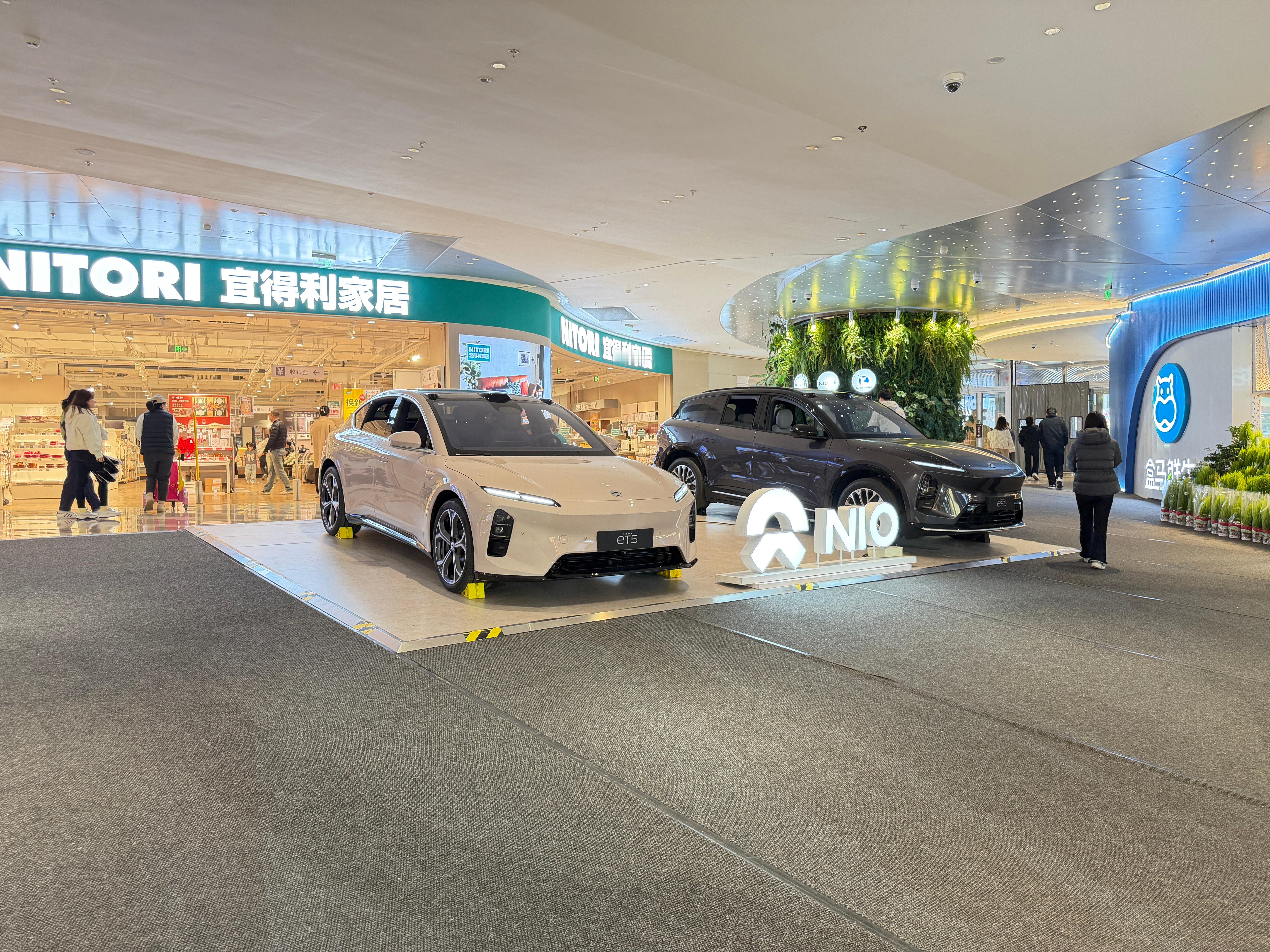 以前特斯拉在这个商场只有个临展,现在替代原来的SONY数码店升级成了门店。原来特斯拉的临展位就在牛屋门口,现在被NIO拿下,摆着ET5和ES6。原来牛屋门口黄金位摆着ET5 和 ES6,我第一台蔚来ET5就是在这门口看中的,现在换成了热销的萤火虫和ES8,里面则是EC6 和ET5T,齐活儿了。