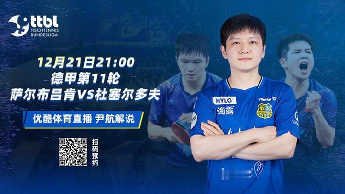 12月21日21:00德甲第11轮,萨尔布吕肯主场对决杜塞尔多夫!樊振东强势出战,乒坛传奇波尔跨界解说,强强碰撞+神仙联动拉满期待!锁定赛事,看樊振东冲击胜利,见证精彩对决~