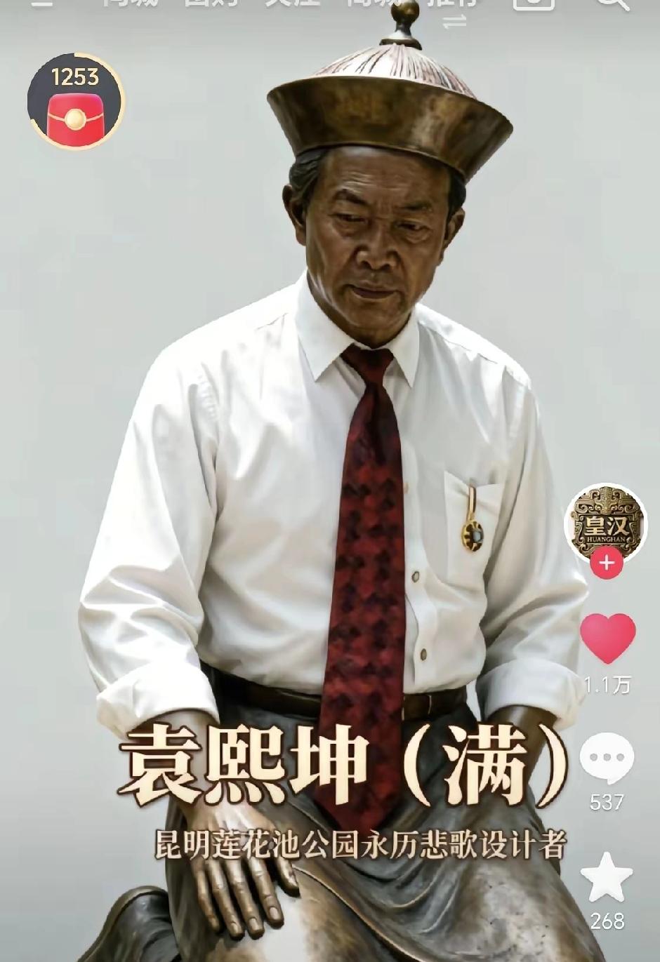 昆明莲花池公园,“永历帝受难雕塑”引起争议后,“搬到博物馆”,也算“整改”完毕[思考]网友怀疑雕塑作者袁熙坤是“满遗”,所以故意为之,甚至还出了“镇魂”的阴谋论[石化]…说实话,袁氏祖籍贵州、生于云南,可能性有,但不大 [吃瓜群众]但,此人长期“旅居日本”,“屁股坐歪”也就很合理了——“告十八省豪杰”也好,“日满(伪)一家”也罢,都是倭人“贼心不死”的手段而已