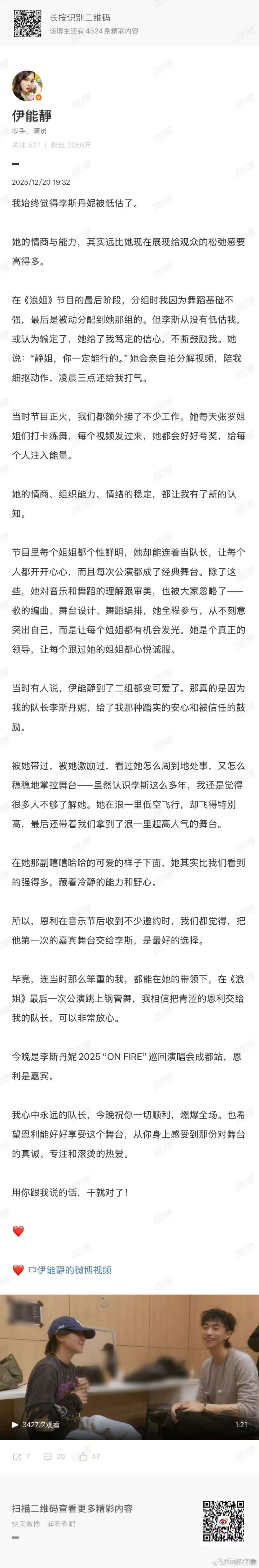 伊能静 把恩利交给李斯丹妮非常放心 恩利将现身李斯丹妮演唱会带来合作舞台,伊能静长文力挺,直言 “最好的选择”。这份信任拉满的合作,谁能不期待?