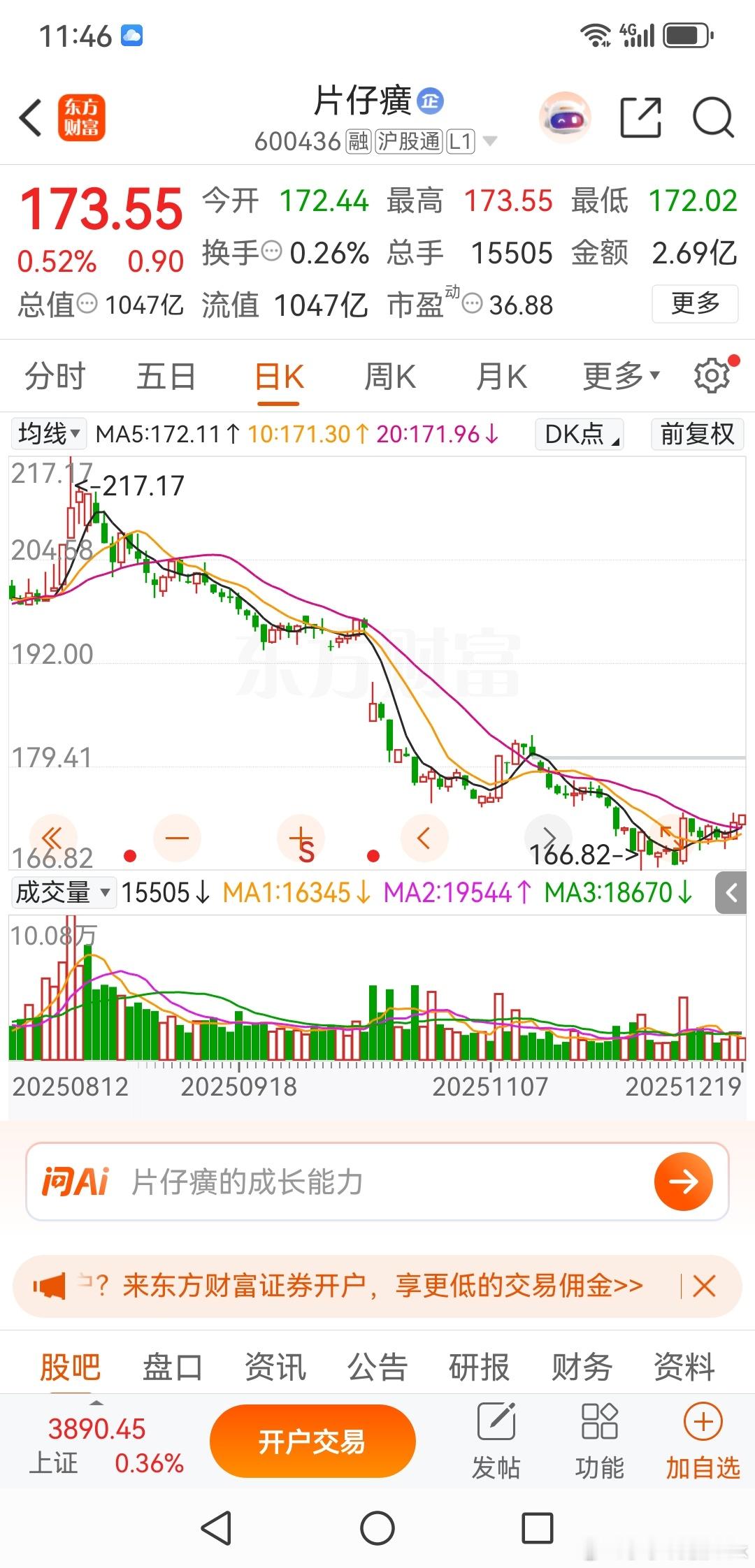 片仔癀,弱势反弹不值得操作周五有位群友请我看看片仔癀是否能做?我的意见是不值得操