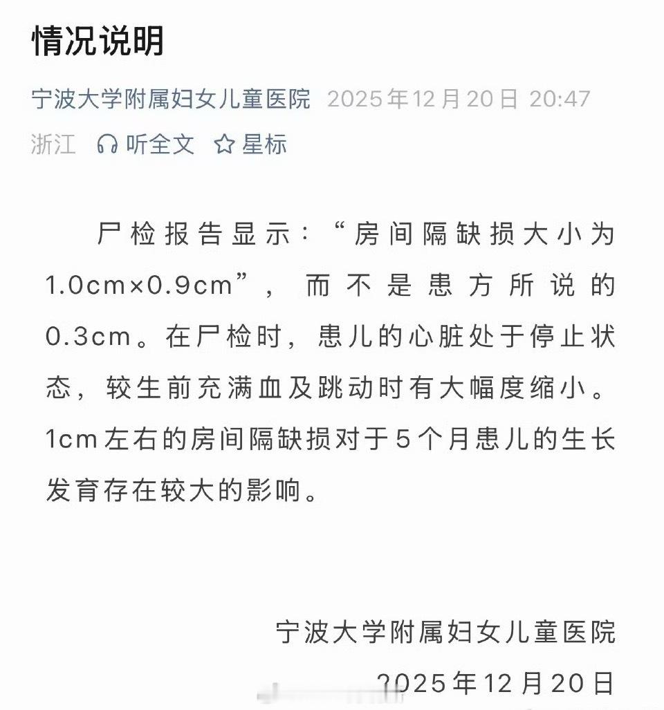 宁波大学附属妇女儿童医院发布情况说明后随后又删了。。。。。。涉事医院回应小洛熙尸检报告