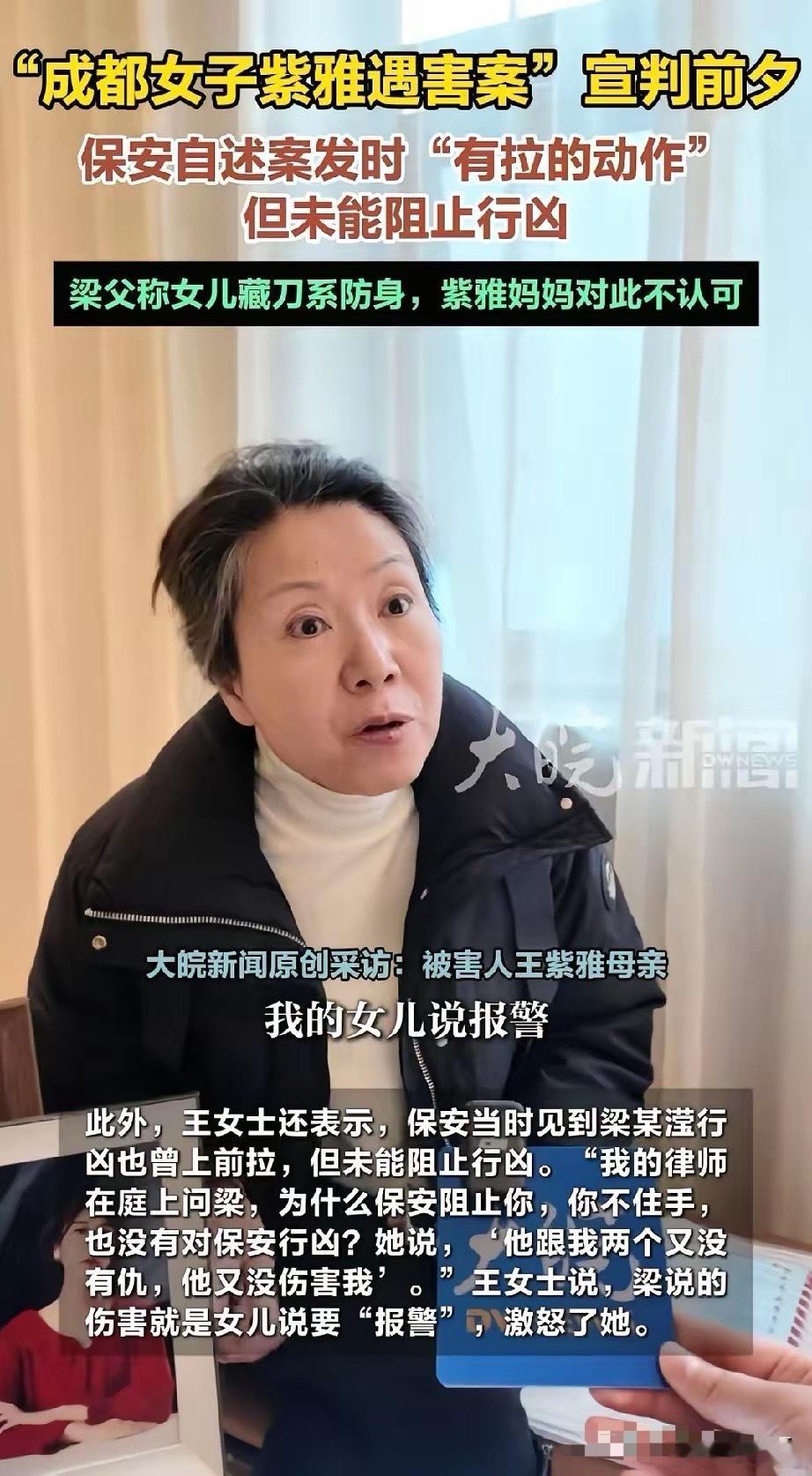 紫雅妈妈说,法庭上她的律师问梁珂莹,为什么保安也拉你了,也阻止你了,你怎么不攻击保安?梁珂莹反问道,我跟保安无冤无仇的,为什么要伤害他?而她攻击紫雅的理由就是紫雅报警了,惹到她了。她还曾对着帽子叔叔叫嚣,法律上没有那条条例规定,不能敲门。我觉得这个梁珂莹很聪明,怪不得紫雅妈妈身边的年轻律师说,她比正常人的思维还敏捷,很会为自己狡辩。所以不管她有没有精神问题,至少她行凶的时候是清醒的,她不是无差别攻击。而是有选择对象,可能她早就观察紫雅很长时间了,这点很可怕。防不胜防啊!法律不是规定,即使是精神病患者,只要是在意识清楚的时候伤害他人的,也要负法律责任。所以,梁珂莹明天大概率会是死刑。真心希望紫雅妈妈能赢!对于这件事,你怎么看呢?